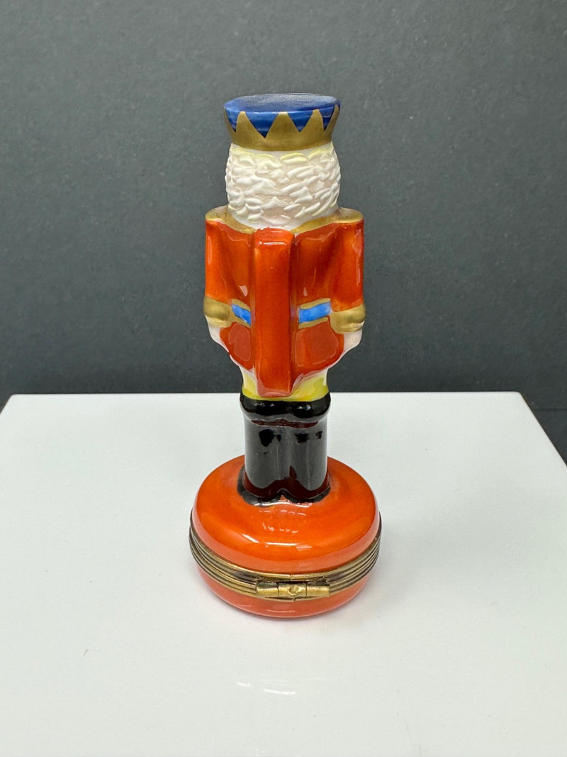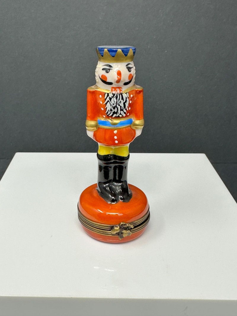 Design: Boot-shaped trinket box with gilt accents and hinged lidNutcracker Figure Trinket Box