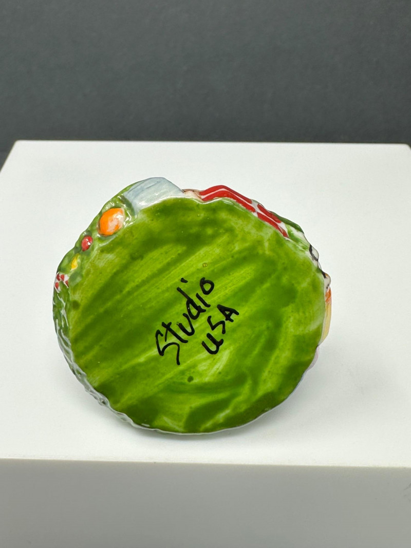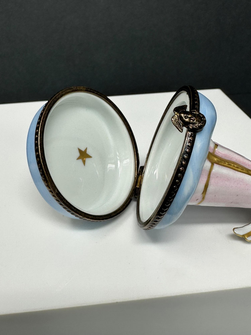 Material: Hand-painted porcelain with metal-mounted hinged base