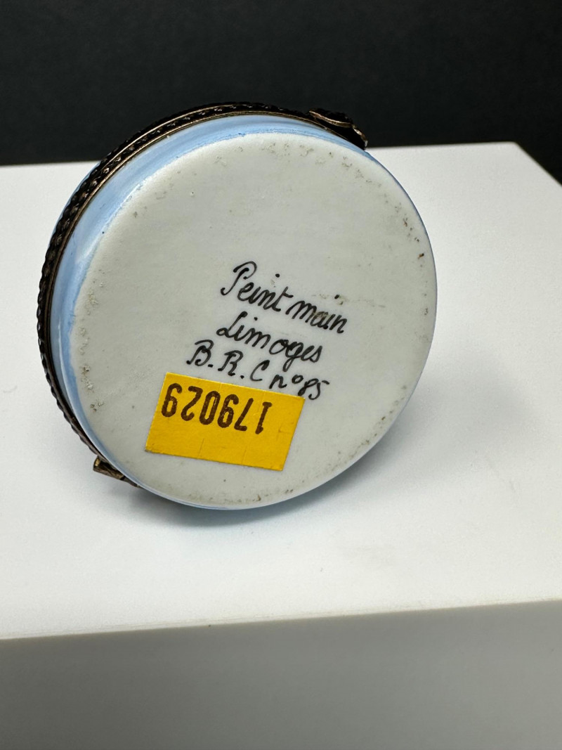 Material: Hand-painted porcelain with metal-mounted hinged lid