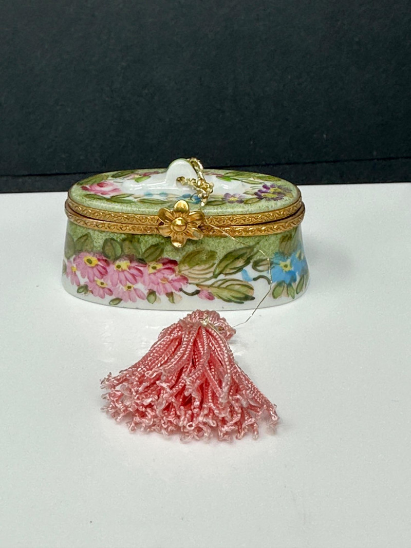 Oval Floral Trinket Box with Tassel