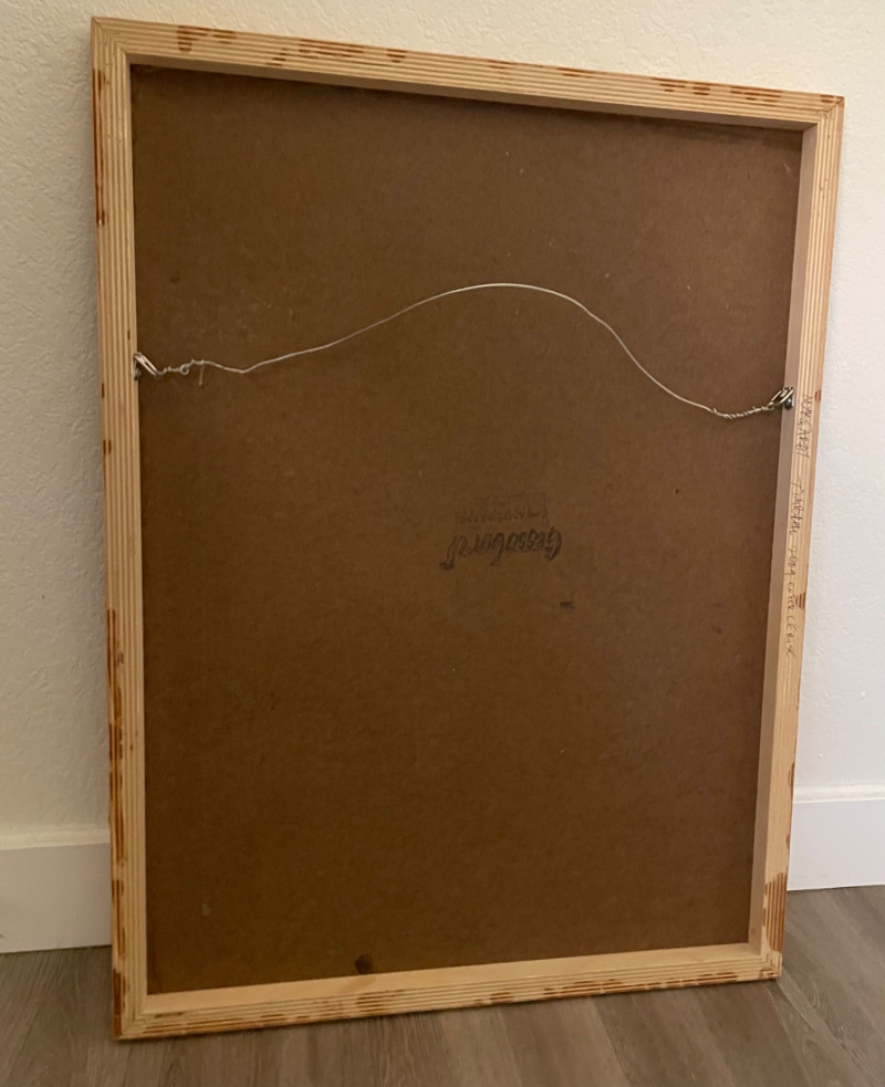 Artwork: Mixed geometric forms: rectangles, circles, and irregular shapes Muted palette of gray, blue, brown, and green tones Layered textures suggest watercolor or mixed media technique Horizontal banding evokes architectural or industrial rhythm Presentation: Metallic frame with white mat for clean, gallery-style display Ready to hang; ideal for modern, minimalist, or transitional interiors Artist’s signature style blends structure with organic abstraction Measurement: 24” x 18” x 1”Margaret Timbien Abstract Painted Art – Framed Geometric Composition