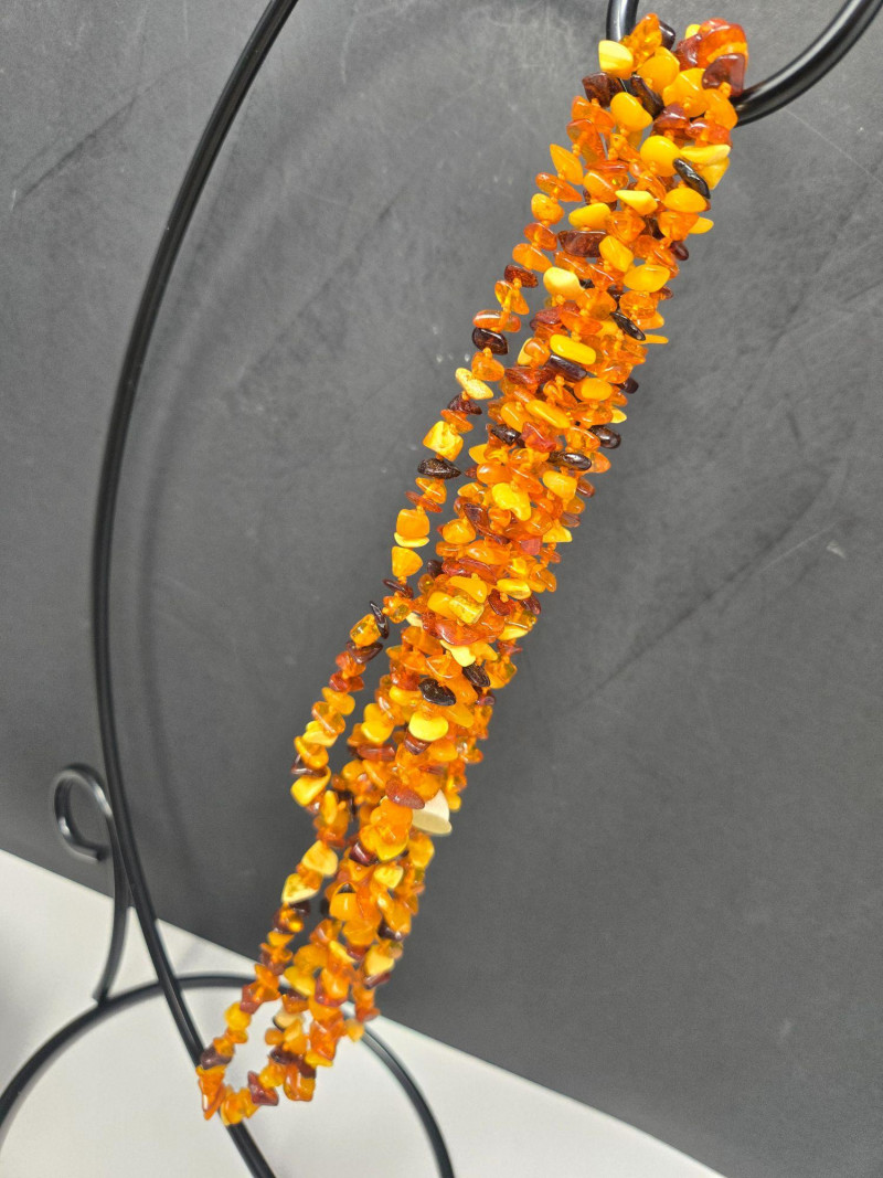 Materials & Styles: Genuine amber and amber-hued resin or glass Shades range from honey yellow to deep cognac and cherry brown Includes smooth polished beads, irregular chips, and statement stones Metal settings in silver and gold tones for pendants Presentation: Displayed on white blocks and black metal stand for visual impact Includes two large pendants with sculptural amber stones Ideal for sorting by tone, size, or styleAmber & Amber Hue Jewelry – Natural Warmth & Vintage Elegance