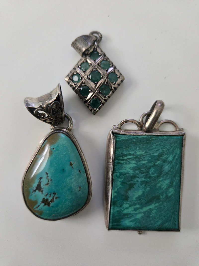 Materials & Styles: Includes turquoise, red stones, silver-toned metal, and mixed inlays Designs range from geometric and symbolic to organic and minimalist Features engraved motifs, polished stones, and intricate metalwork Some pendants include natural stone formations and tribal-inspired accents Presentation: Arranged vertically on white background for easy viewing Ideal for sorting by color, shape, or cultural influence Ready for resale, crafting, or display🔷 Lot Title: 14 Pendants – Artisan Stone & Metalwork Collection