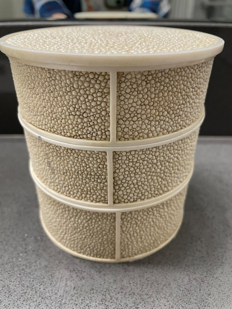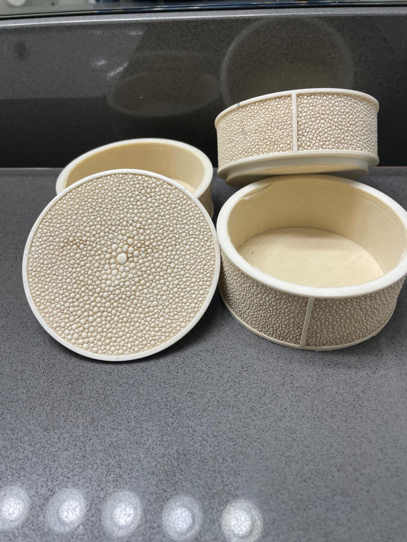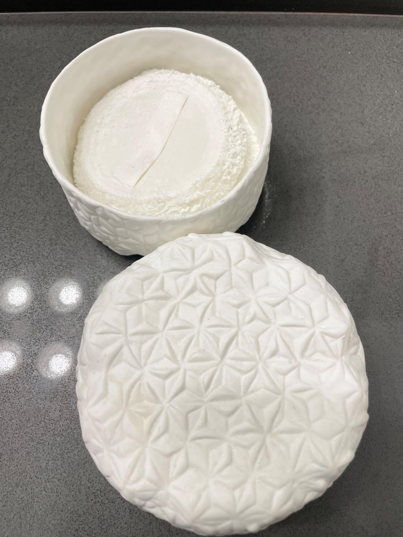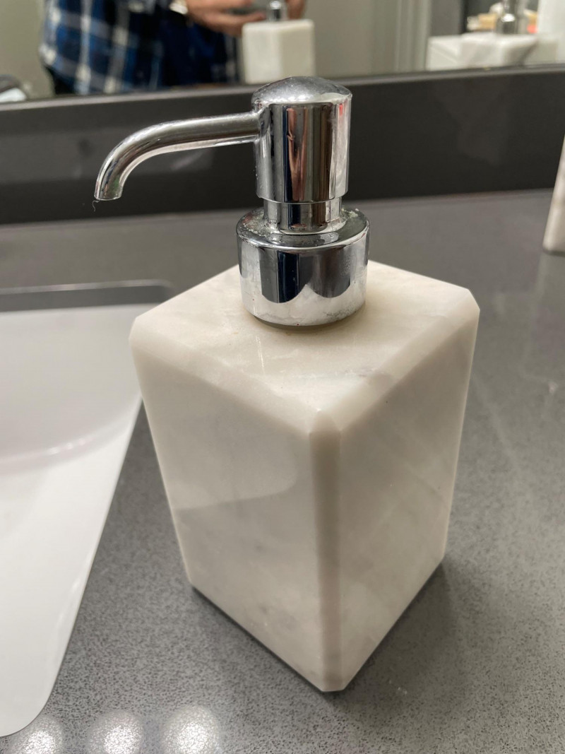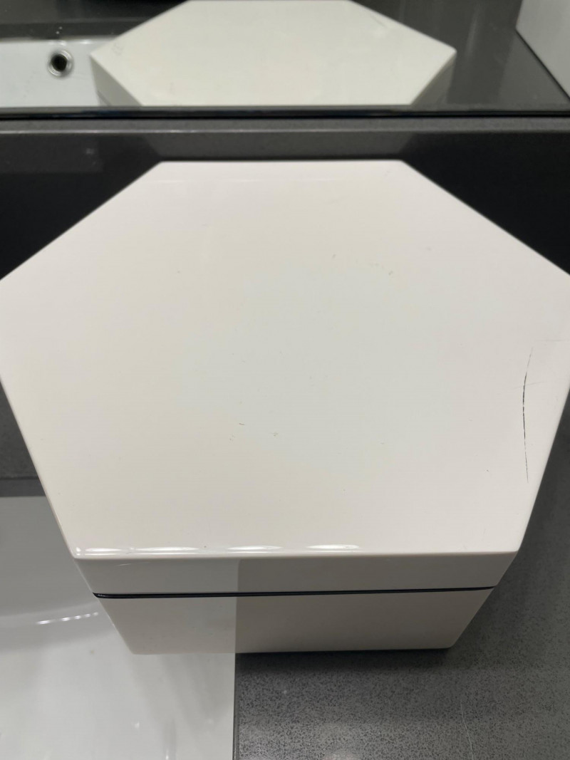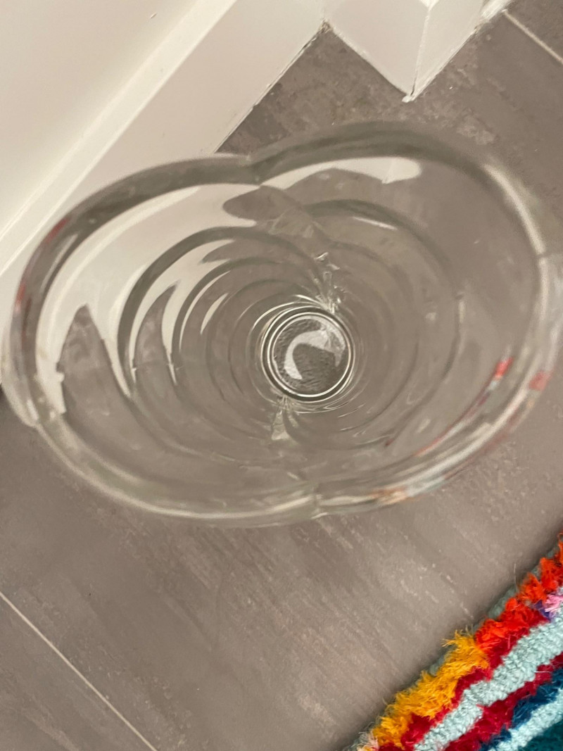 Decor & Storage: Mirrored vanity tray with elegant layout White textured containers, marble soap/lotion dispenser, and geometric accent pieces Carved wooden box and clear glass bowls for jewelry or cotton rounds Beauty & Grooming: “HOT TOOLS” metallic cosmetic pouch Assorted grooming items in circular holder (possibly curlers or skincare tubes) Tall glass vase with heart-shaped opening for brushes or florals Crystal Accents: Clear quartz cluster and gold-trimmed geode in display cubes Adds a touch of spa-like serenity and natural charmBath Decor, Hot Curl & Accessories – Vanity Tray with Beauty & Crystal Accents