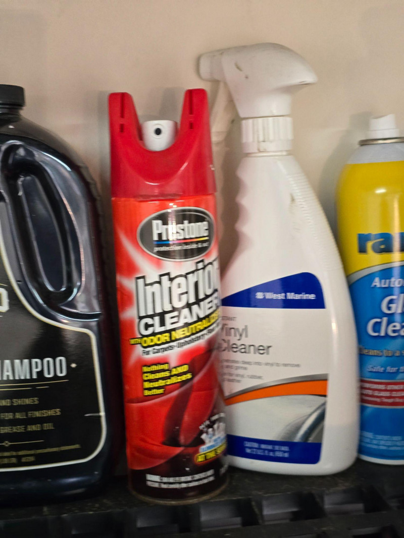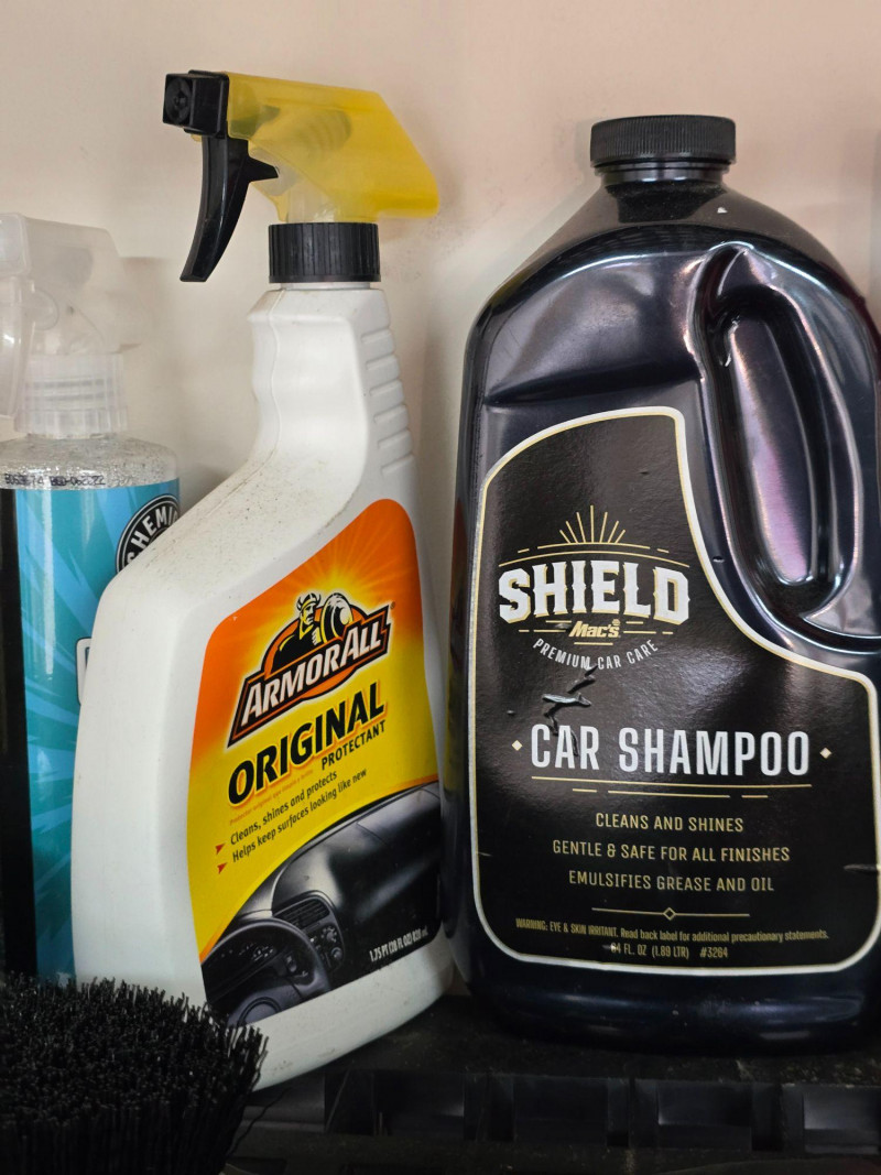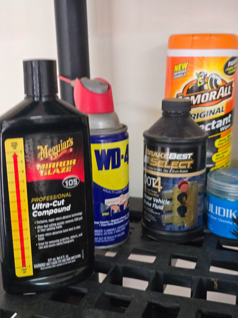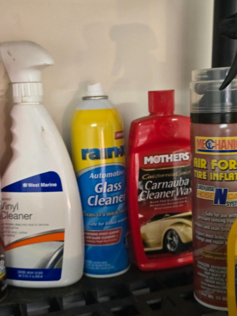Large assorted lot of automotive items including car cleaning products, tire chains, motor oil, and additional related supplies. Contents vary in type and condition. A practical mixed group for vehicle maintenance, detailing, and emergency readiness. Condition: Mixed use and storage wear. Some items new or partially used; tire chains appear complete but untested. Notes: Sold as a single lot. Please review photos for included items.
