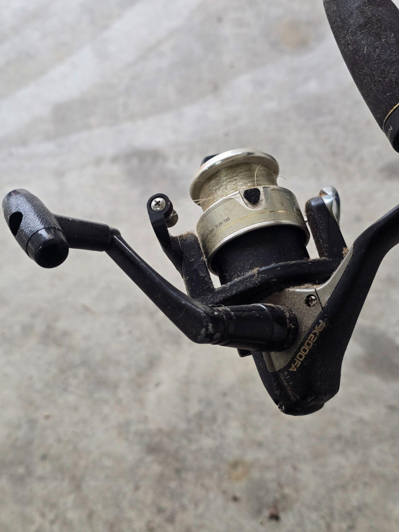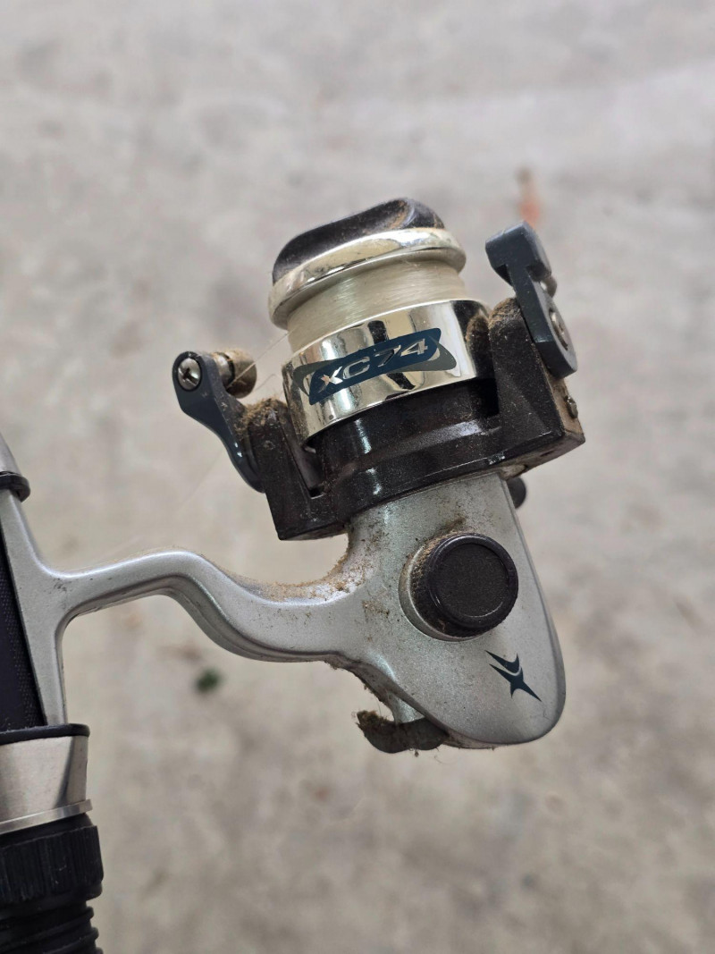 Pair of fishing poles, including one Shakespeare Ugly Stik and one XC74‑202 rod, each fitted with its respective reel. The reels are branded XC‑74 and FX200FA. Both rods and reels show typical use from regular outdoor activity. Guides, handles, and reel seats appear intact. A practical set for recreational fishing or as additions to an existing gear collection. Condition: