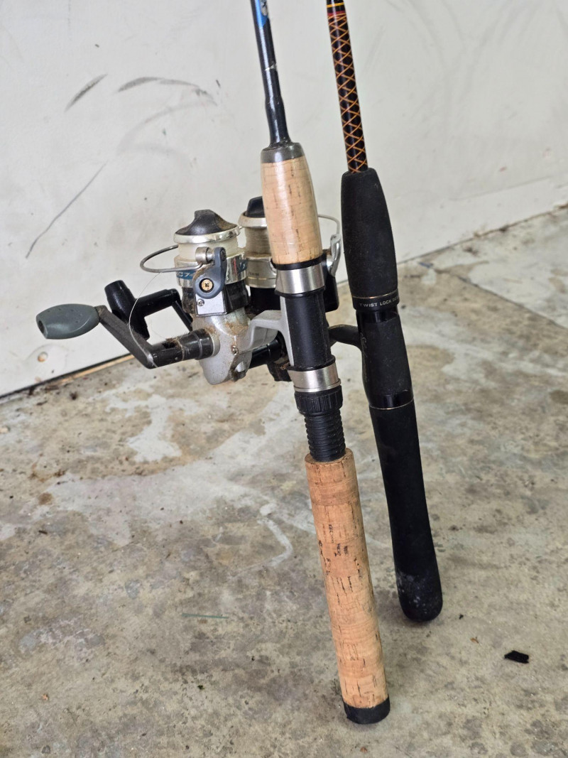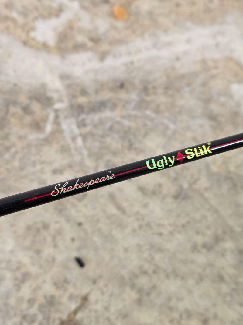 Used; light to moderate wear consistent with age and use. Includes: (1) Shakespeare Ugly Stik fishing pole with FX200FA reel (1) XC74‑202 fishing pole with XC‑74 reel