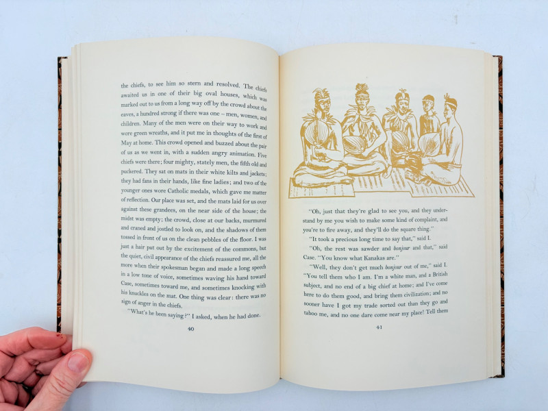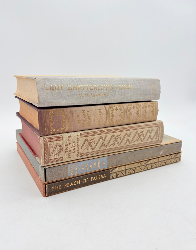 While they may take place far from the British Isles, these stories all have a connection to Britain though their authors. Lady Chatterley's Lover (DH Lawrence) 1959. Grove Press, New York. 368 p. Owner's name on fly page. The Arabian Nights (Sir Richard Burton) No publication date, but we guess in the early 1900s. The Book League of America, New York. 401 p. The Forsyte Saga (John Galsworthy) 1933. Charles Scribner & Sons, New York. 921 p. The Way of the World (William Congreve) 1959. Heritage Press, New York. 108 p. The Beach of Falesa (Robert Louis Stevenson) 1956. Heritage Press, New York. 130 p. Owner's name on inside cover. Heritage Press existed from 1937 - 1982. They published almost exclusively classics in literature and history. Their publications were known for terrific illustrations, quality materials, and elegant covers that were lovely without being overly precious.