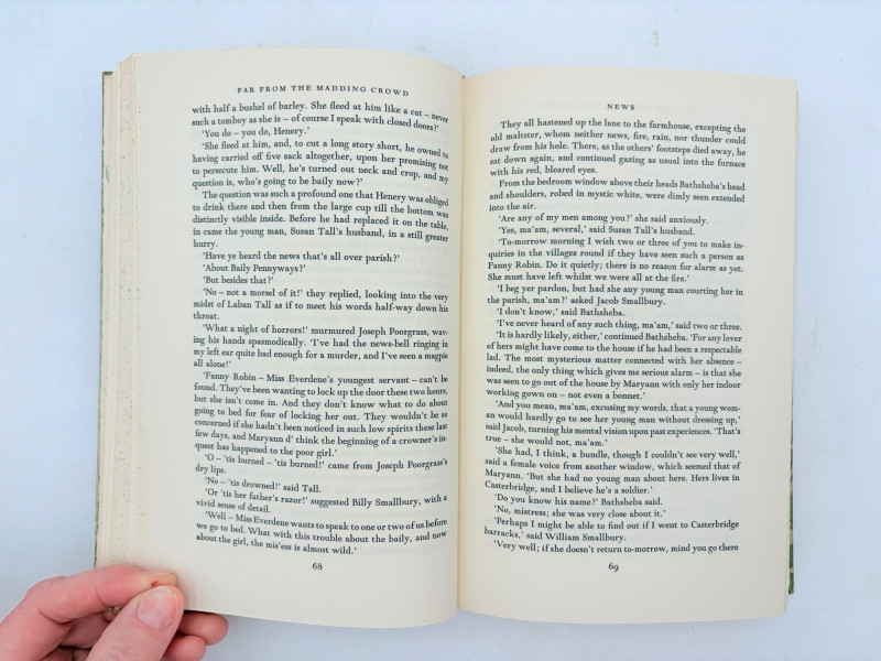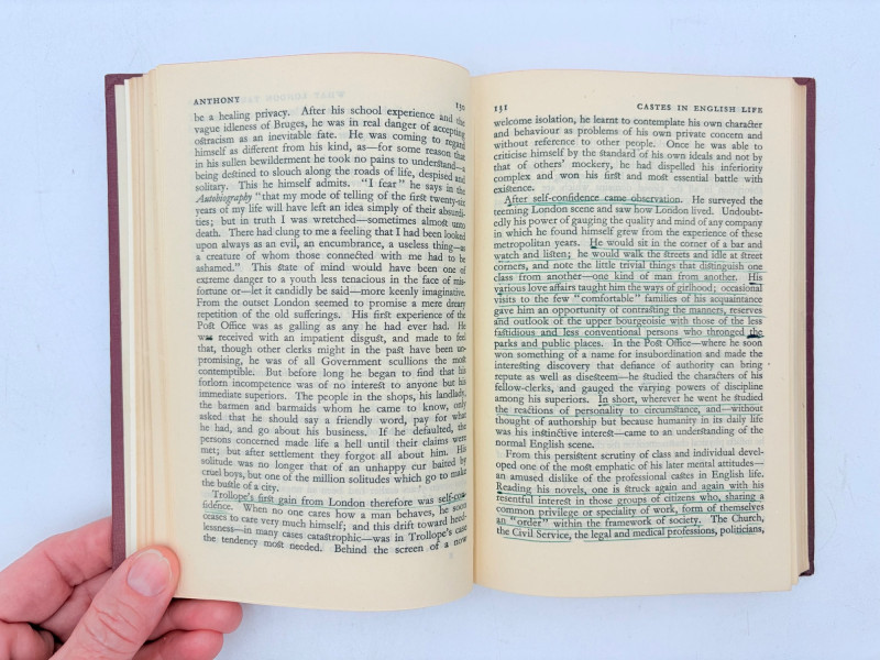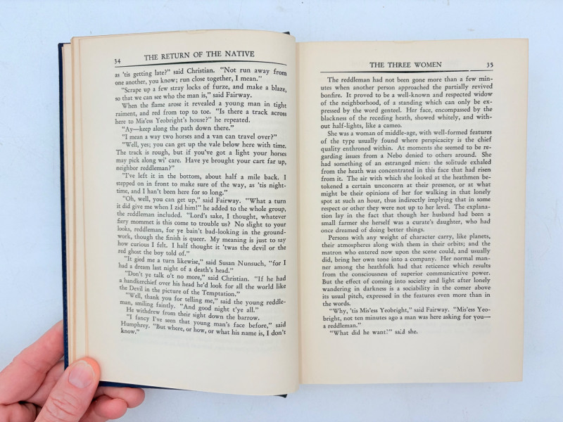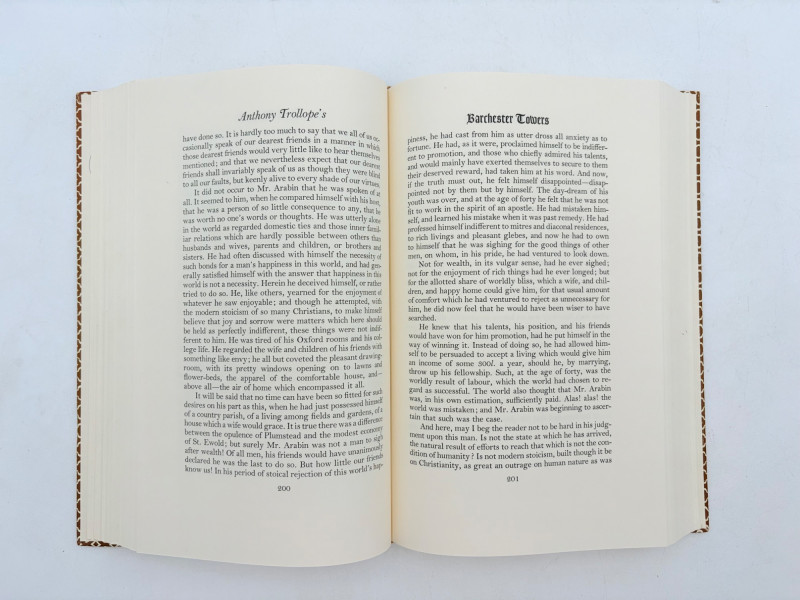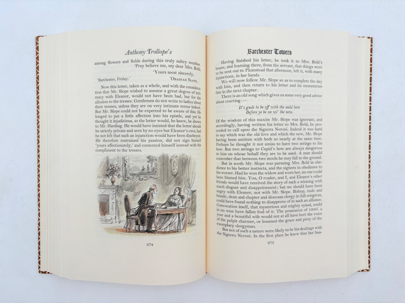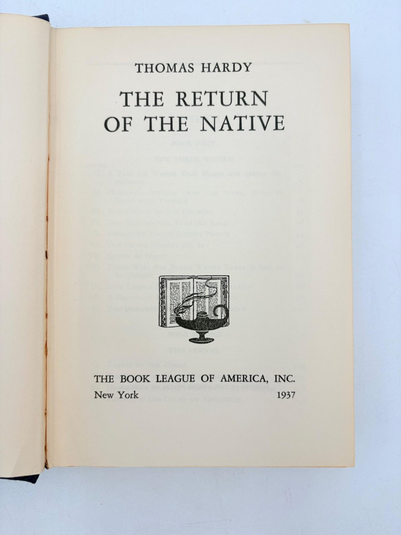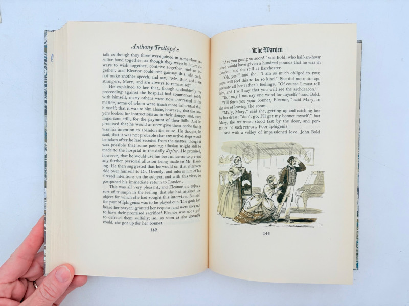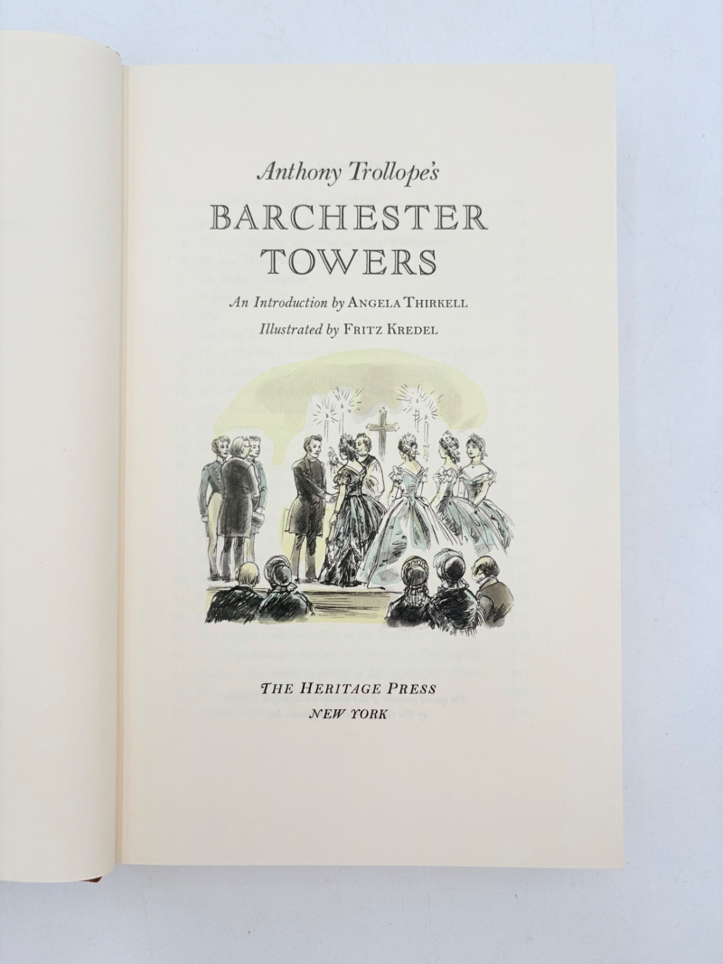 Some lesser known writing from some well-known writers! Trollope - A Commentary (Michael Sadleir) 1947. Constable & Co, London. 435 p. Writing in text. The Return of the Native (Thomas Hardy) 1937. American Book League, New York. 470 p. Owner's name on inside cover. Far from the Maddening Crowd (Thomas Hardy) 1958. Heritage Press, New York. 400 p. Owner's' name on inside cover. The Warden (Anthony Trollope) 1955. Heritage Press, New York. 262 p. Owner's name on inside cover. Barchester Towers (Anthony Trollope) 1958. Heritage Press, New York. 564 p. Heritage Press existed from 1937 - 1982. They published almost exclusively classics in literature and history. Their publications were known for terrific illustrations, quality materials, and elegant covers that were lovely without being overly precious.
