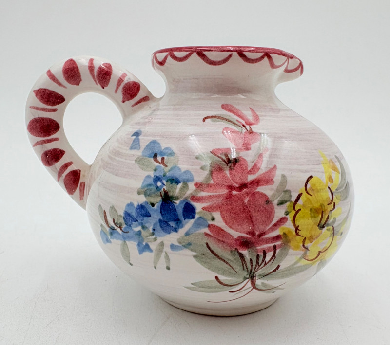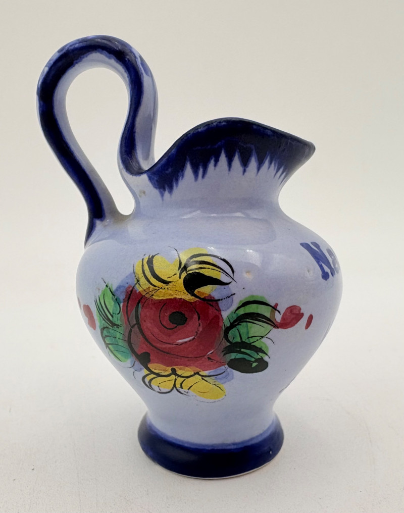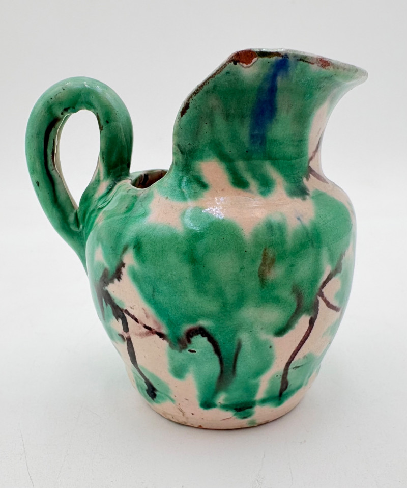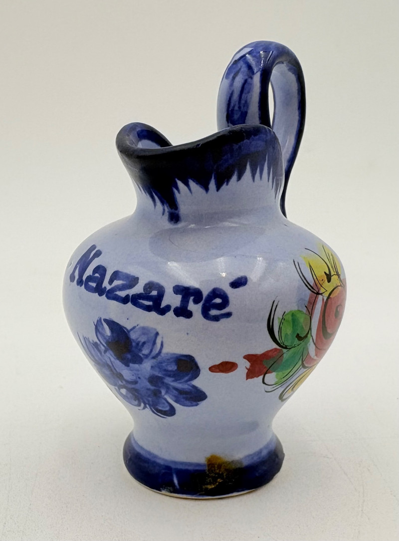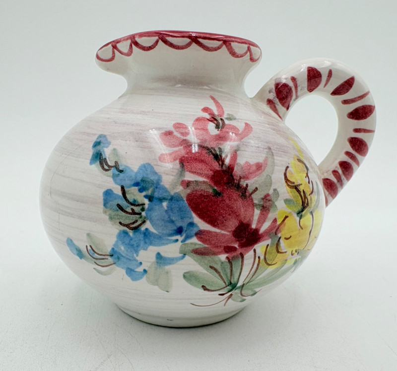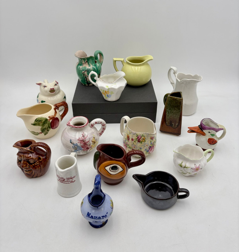Pitcher perfect - in miniature! Great collection of porcelain/ceramic miniature pitchers in diverse styles, colors, and origins. Tallest piece (white traditional pitcher) is 4.5" H. We found no noticeable flaws in the group after a cursory glance. What you see is what you get!