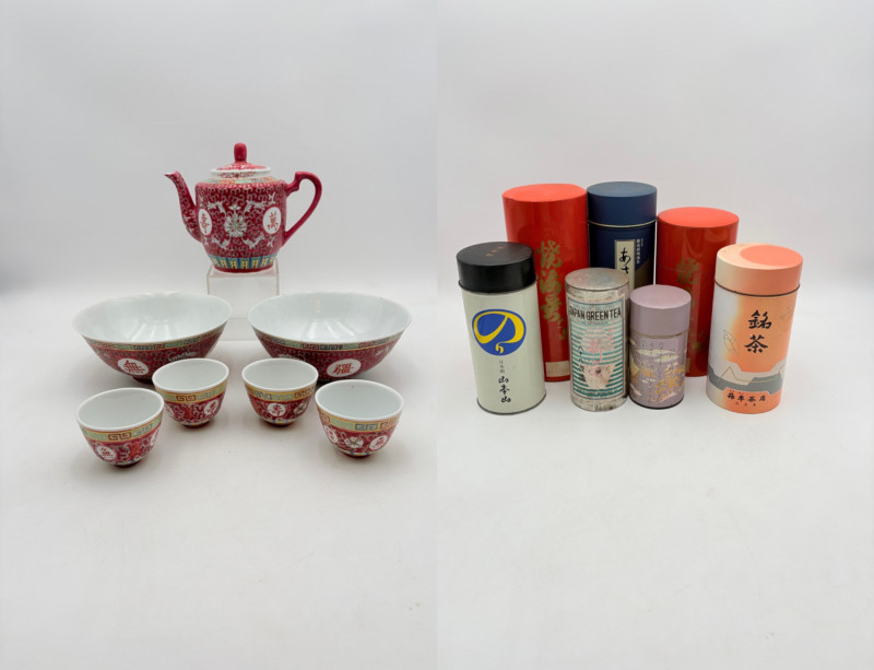 Lot # 71 - Tea Time - Vintage Tea Set and Tea Storage Tins + Bonus