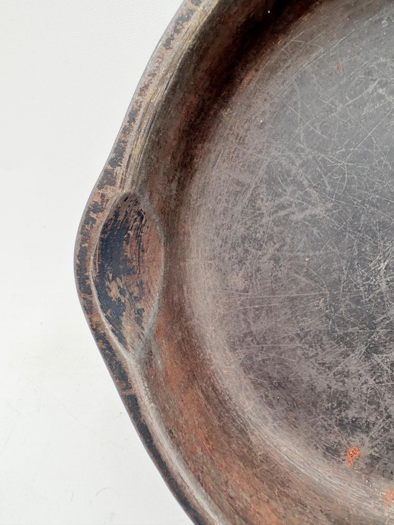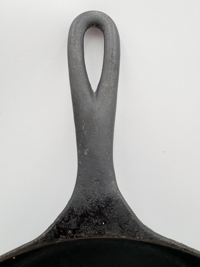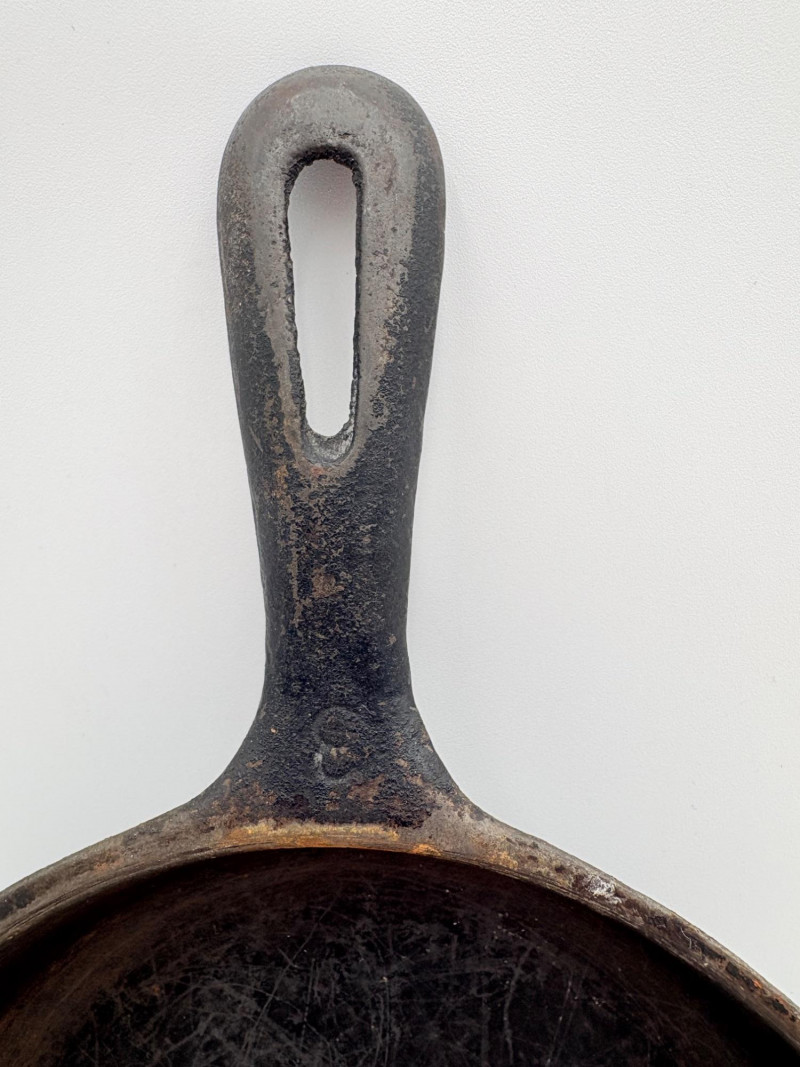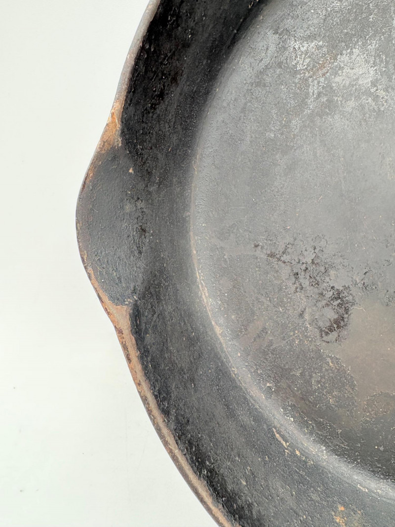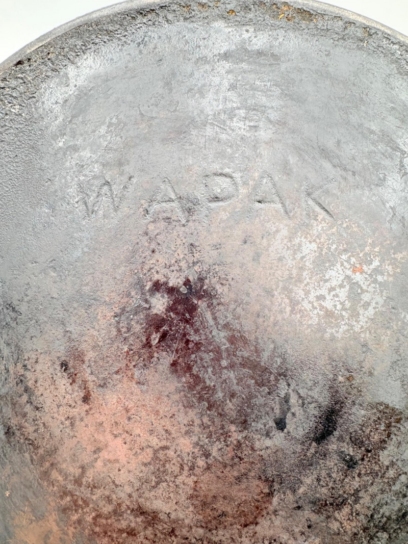 Any great cook knows that cast iron is the workhorse of the kitchen. We have 2 vintage pans of varying sizes in this lot that have seen lots of use but still have lots to give. Both are in need of being stripped and seasoned, but since we do that every few months to our own cast iron, we know that shouldn't be much of a burden for the quality cast iron delivers. (And the vintage cast iron like this is far better than what you find made today). Lot consists of: - 6" diameter pan from unknown maker. Has been used enough that bottom markings are worn off, but handle indicates #3. - 10" diameter pan from WAPAK (made in Ohio). Labeled #8. This pan has a slightly more slender handle than the other 2 cast iron pans of similar size up for auction* - easier for smaller hands. Wapak #8 Skillet - Etsy for sale elsewhere * see Lot #150.