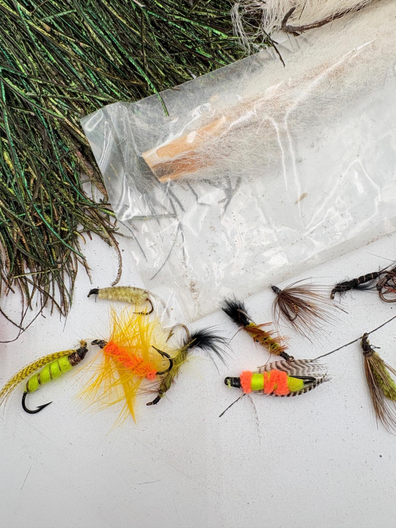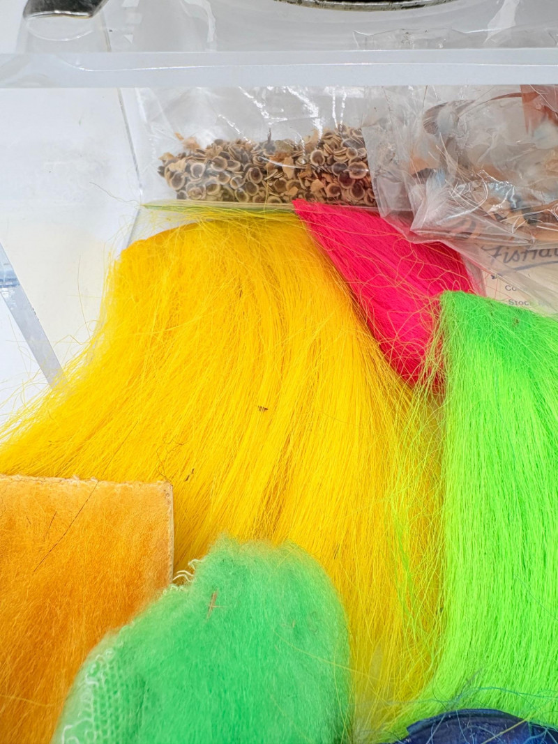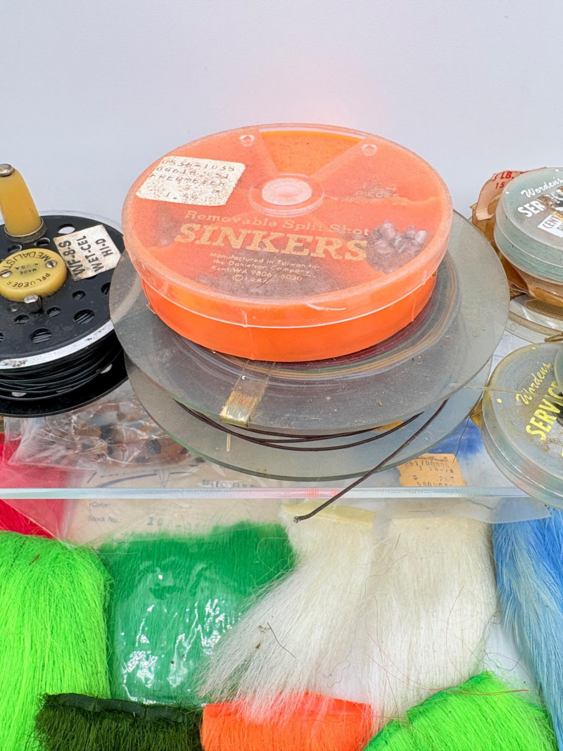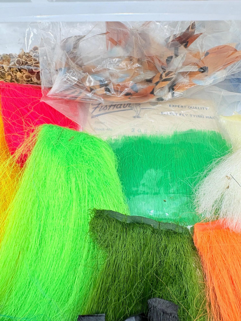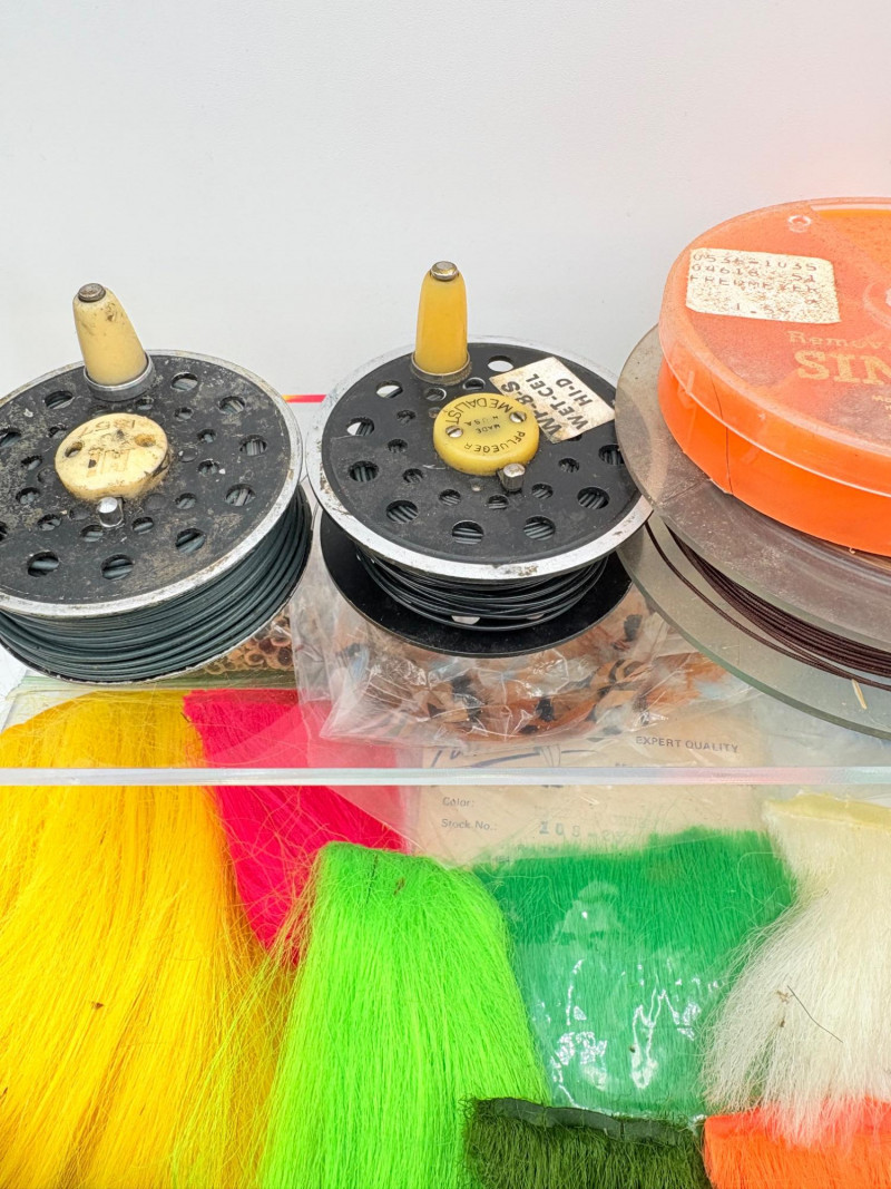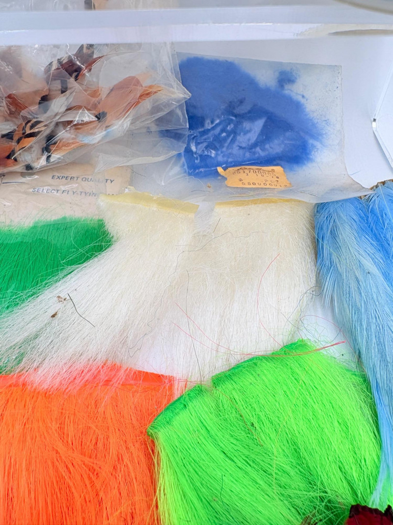 Our client was an outdoors enthusiast & tied his own flies. Here's some of the materials we found in his workshop! Please see photos for details - what you see is what you get!