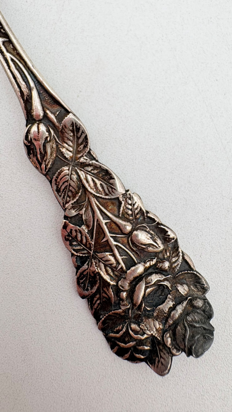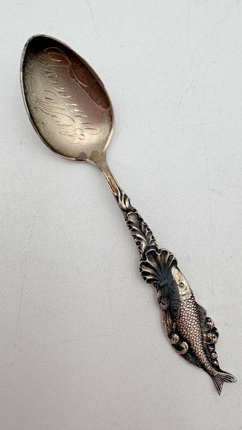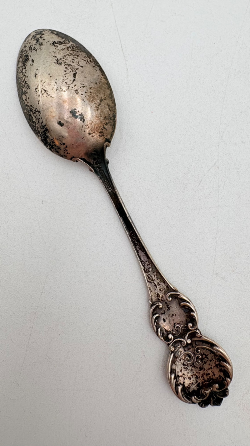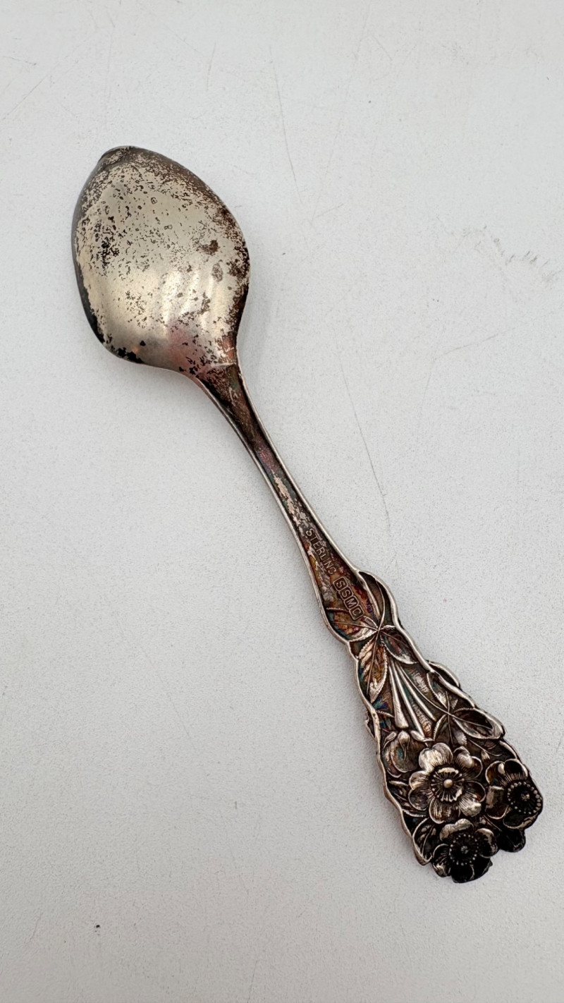 Lovely variety of antique sterling souvenir spoons from various locales - all quite lovely with distinctive in design, and serviceable with a quick polish. Spoons from: - Livingston, Montana - Pioneer Square Totem Pole (Pioneer Square - Seattle) - Seaside, Oregon - Portland, Oregon - St. Maries, Idaho - Tacoma, Washington - Missoula, Montana - UdSSR (Soviet Union) Total weight: 107 grams
