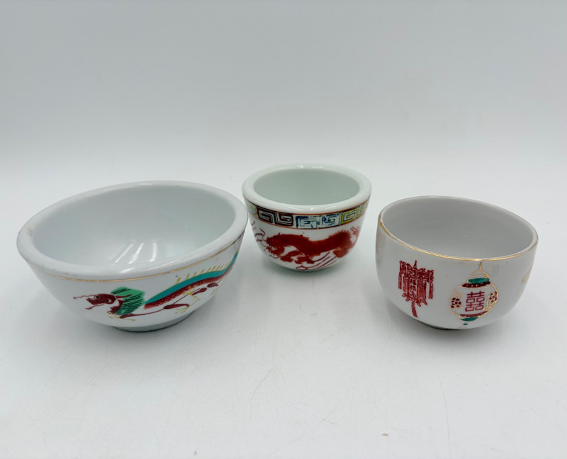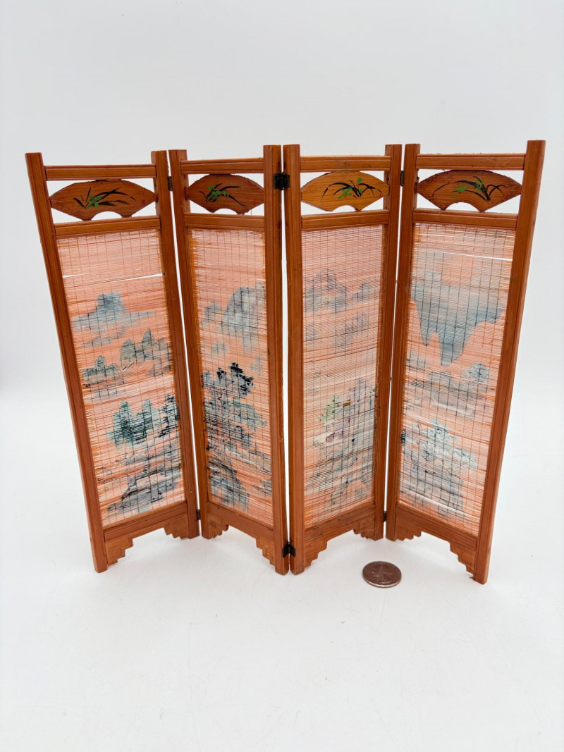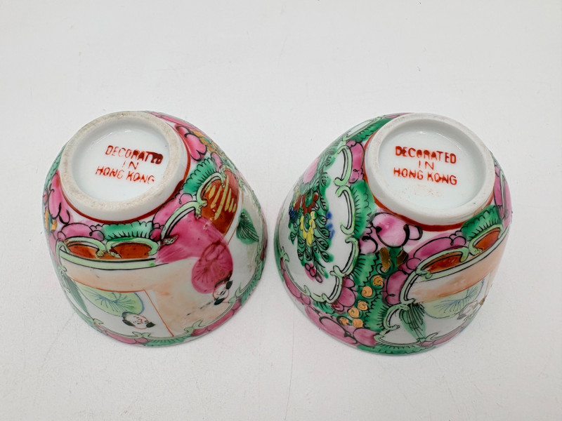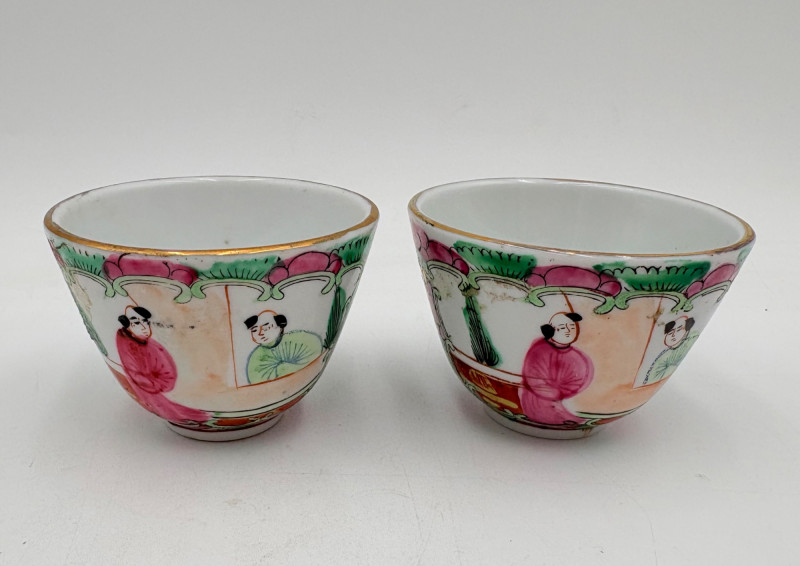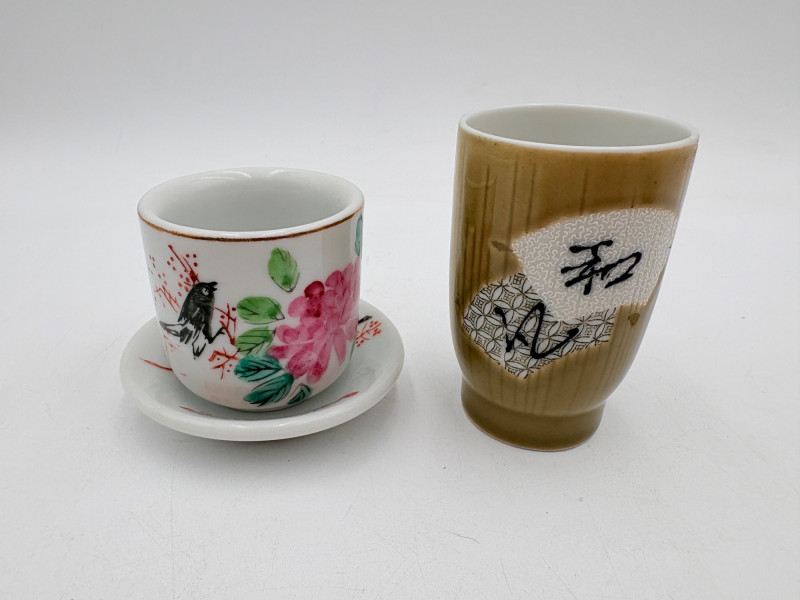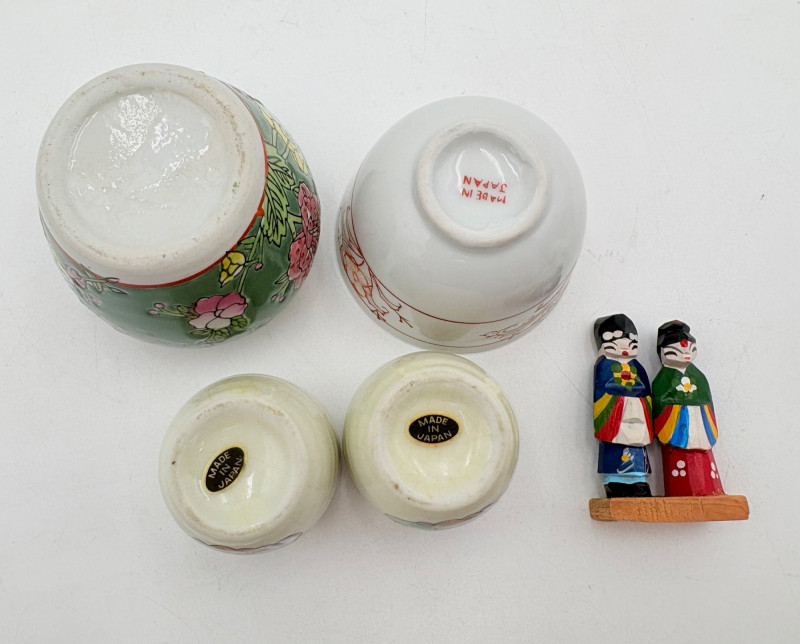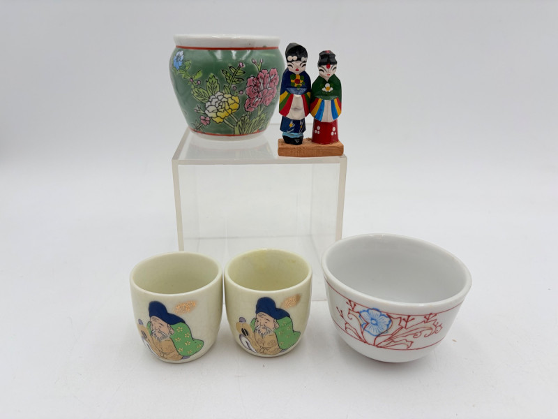 Group of Asian origin items - mostly teacups. What you see is what you get - please look at photos closely. Tallest item is the screen - it measures 10" H.