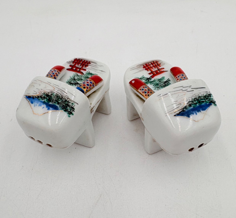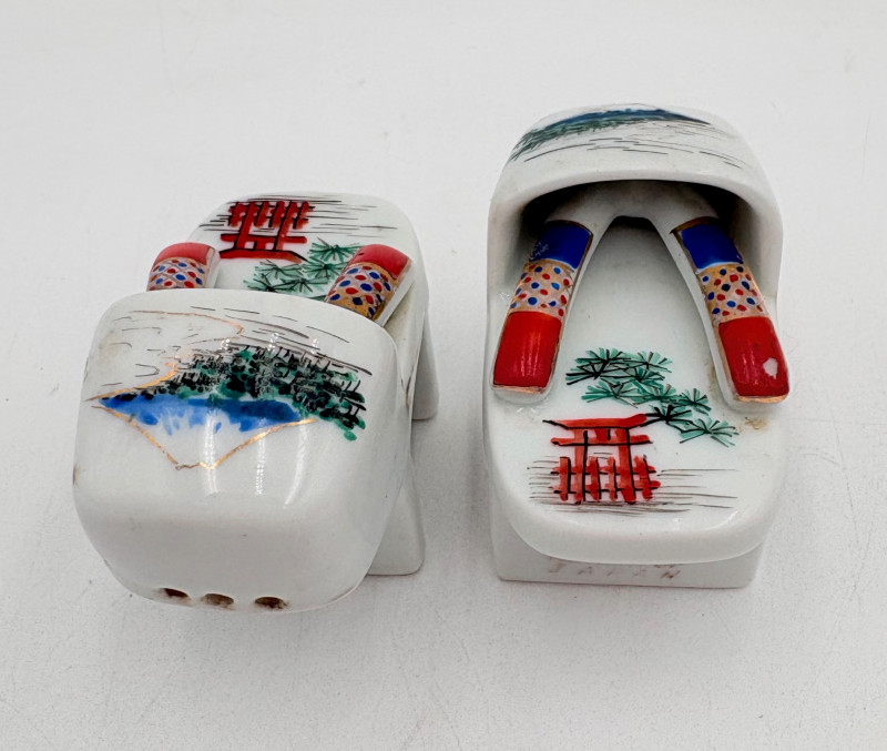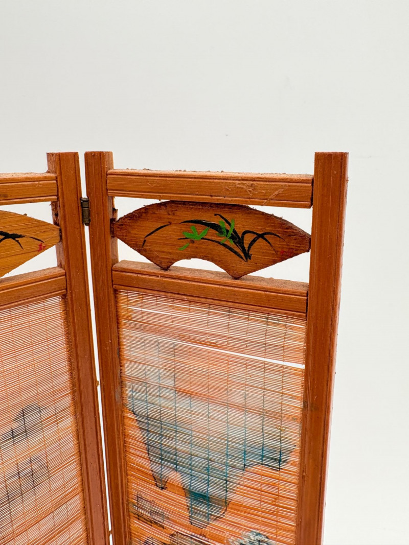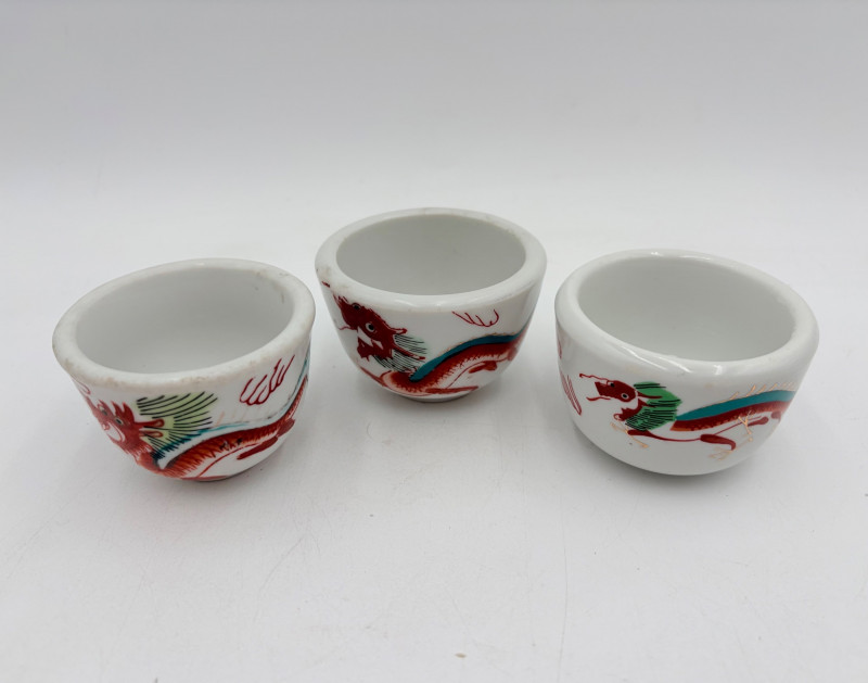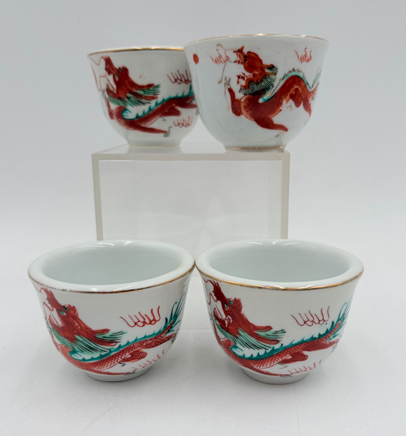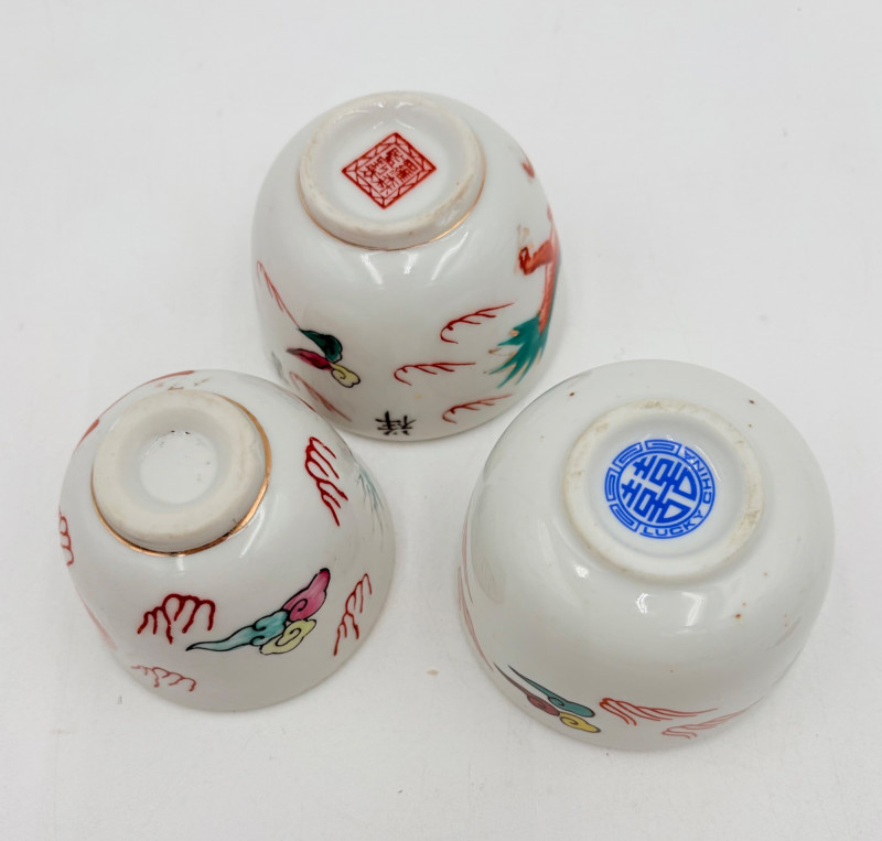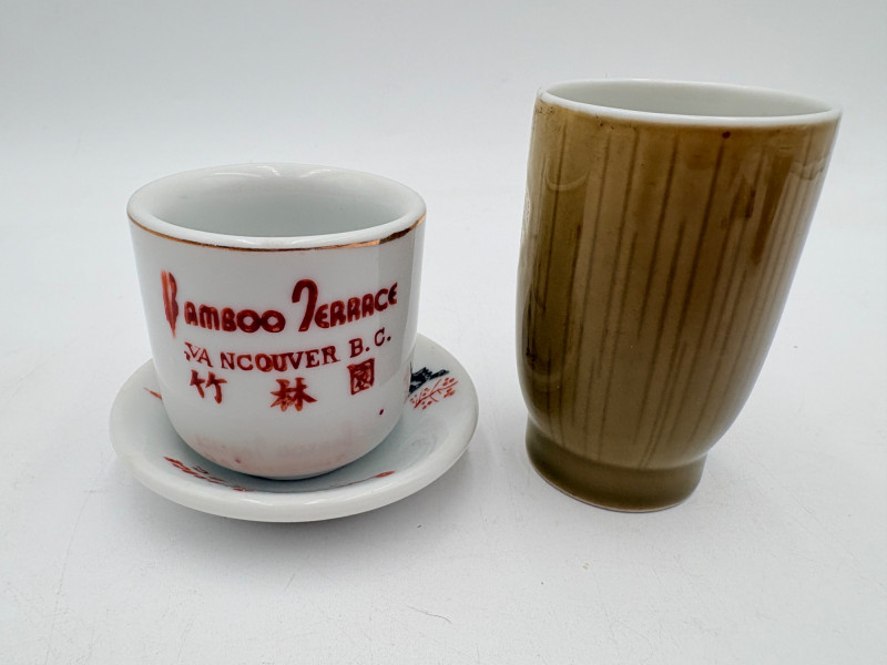 Group of Asian origin items - mostly teacups. What you see is what you get - please look at photos closely. Tallest item is the screen - it measures 10" H.
