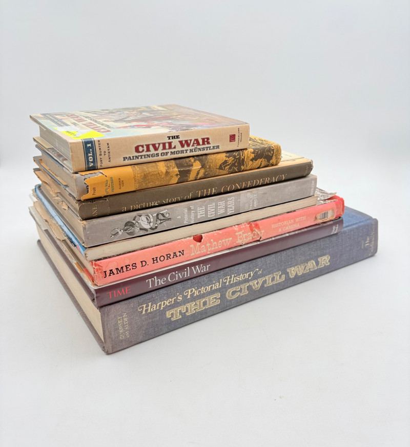 Lots of pictorial books on the Civil War - pictures are indeed worth a thousand words! The Civil War Paintings of Mort Kunstler (William Davis - Foreword) 2006. Cumberland House, Nashville, TN Civil War in Pictures (Fletcher Pratt) 1955. Garden City Books, Garden City, NY. 256 p. Time Illustrated History of the Civil War (Kelly Knauer, ed.) 2011. Time /Life New York. 202 p. Matthew Brady (James D. Horan) 1955. Bonanza Books, New York. 244 p. A Pictorial History of the Civil War Years (Paul Angle) 1967. Doubleday & Co, New York. 242 p. A Picture Story of The Confederacy (Harnett T. Kane) 1965. Lothrop Lee & Shepard Co. New York. 128 p. Inscribed to client from author. Gardner's Photographic Sketch Book of the Civil War (Alexander Gardner) 1959. Dover Publications, New York. no pagination (note this is a paperback) Harper's Pictorial History of the Civil War. 1987. Fairfax Press, Fairfax VA(?). 836 p.