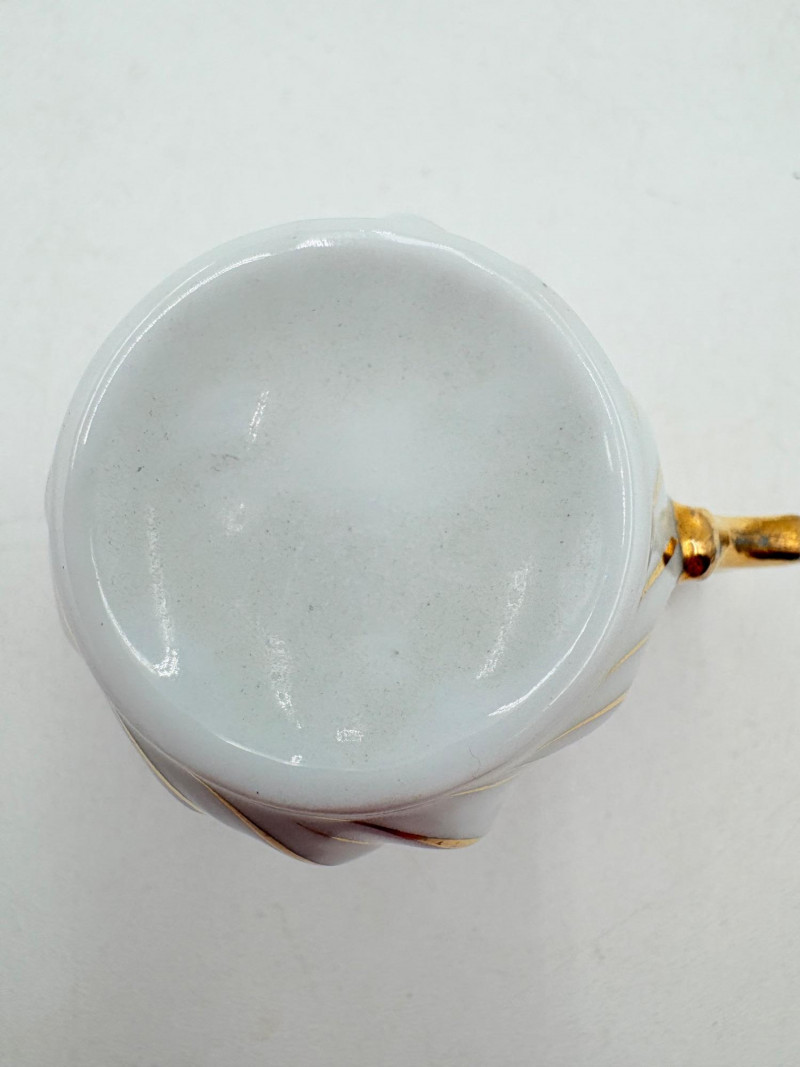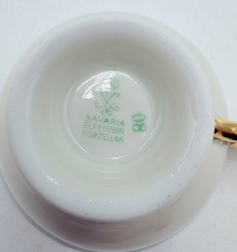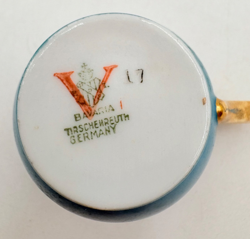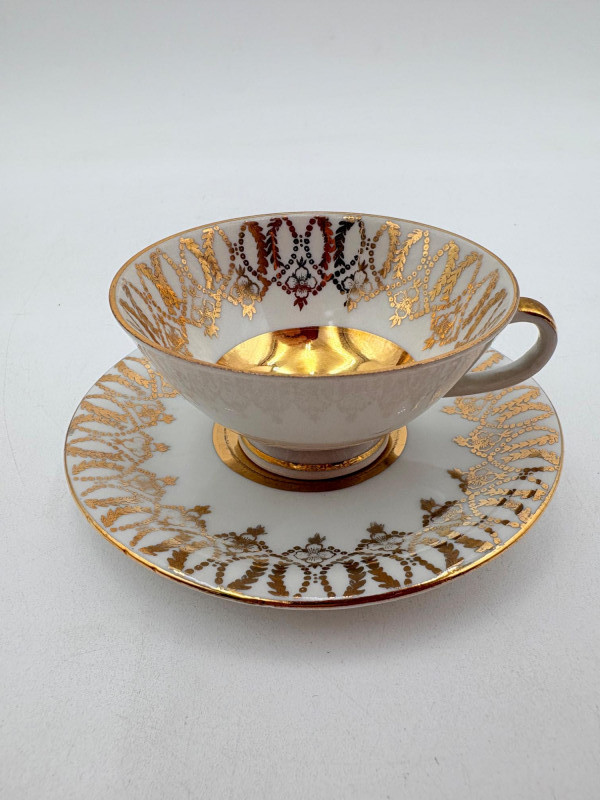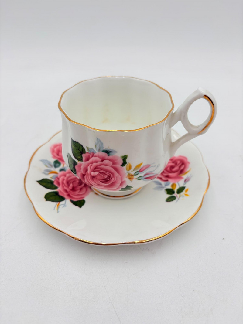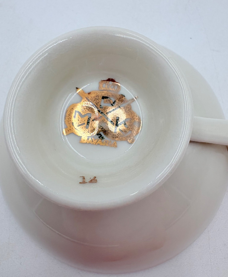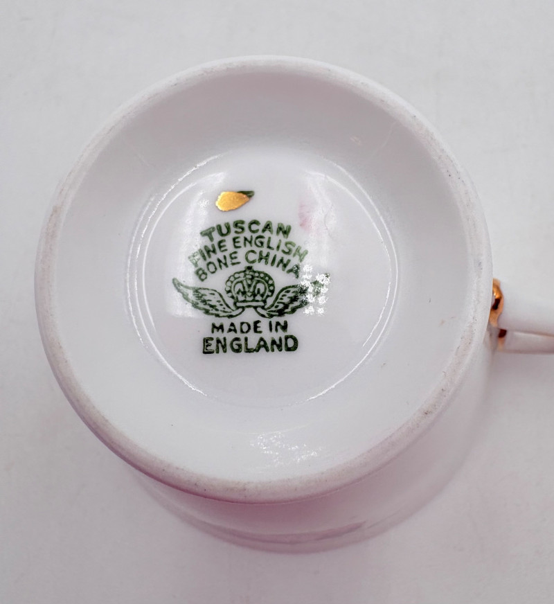 20 vintage or antque teacups & saucers (plus and extra we didn't put in the lead photo). . No major flaws noted upon cursory examination. The detailing on a few of these is exquisite and the porcelain in most is extremely delicate and thin. 16 of the cups are "full size", that is, normal teacup size while the last 5 pictured are demitasse size. Also note that on two of the cups are not paired to their matching saucer, but we substituted another from the same design line that works well. We don't think anyone would notcie if they didn't know. See if you can figure out which two!!