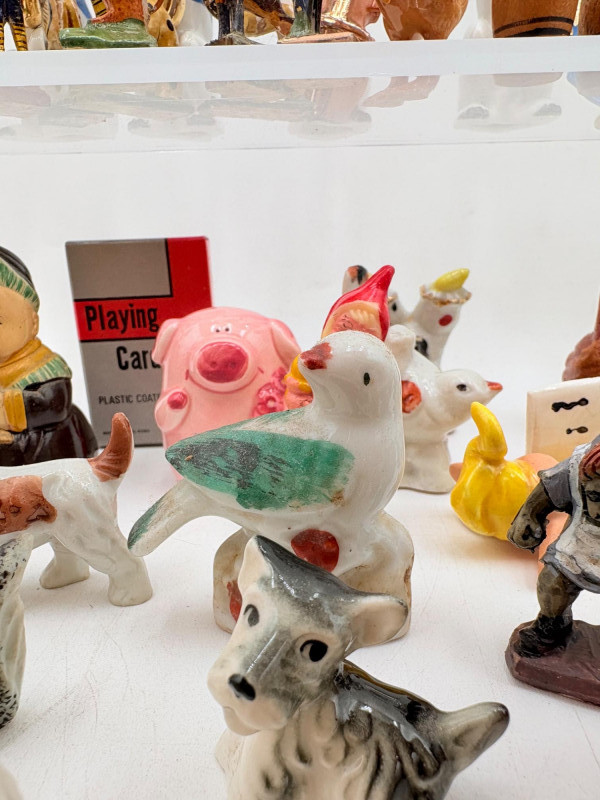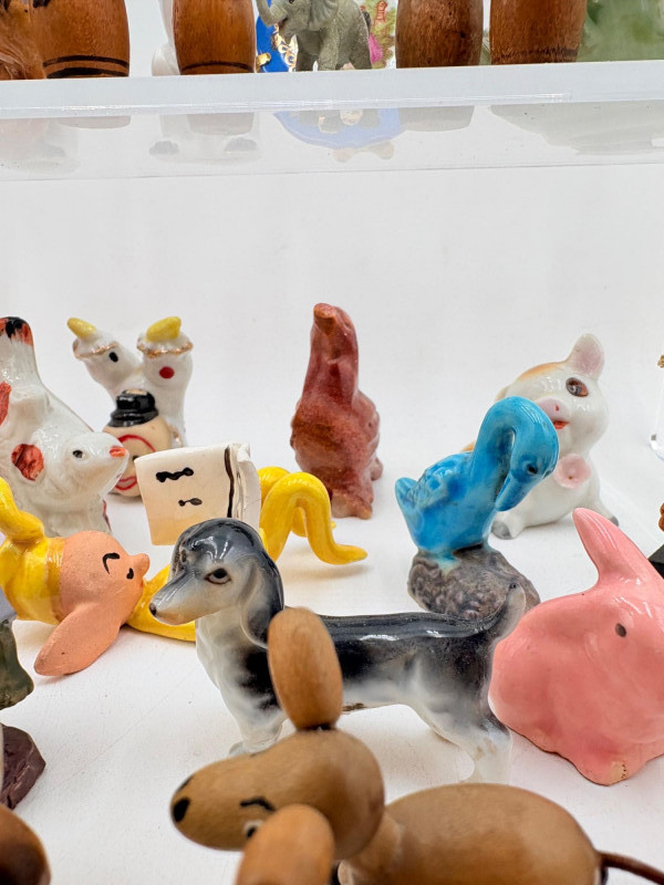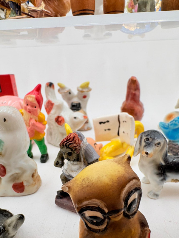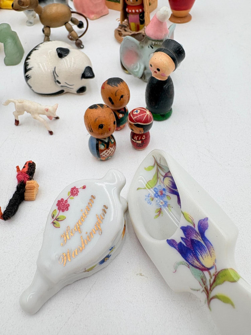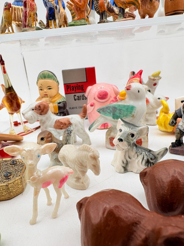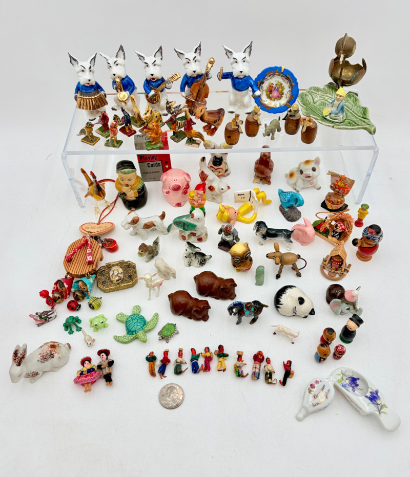 Wow, this is quite a collection of items, but they all have one thing in common: size! There are miniature porcelains, miniature people, miniature dolls, and a whole lot more. Compare the items' size to the quarter in the foreground of the last photo. Enjoy!