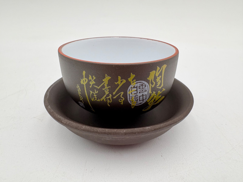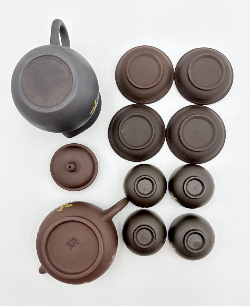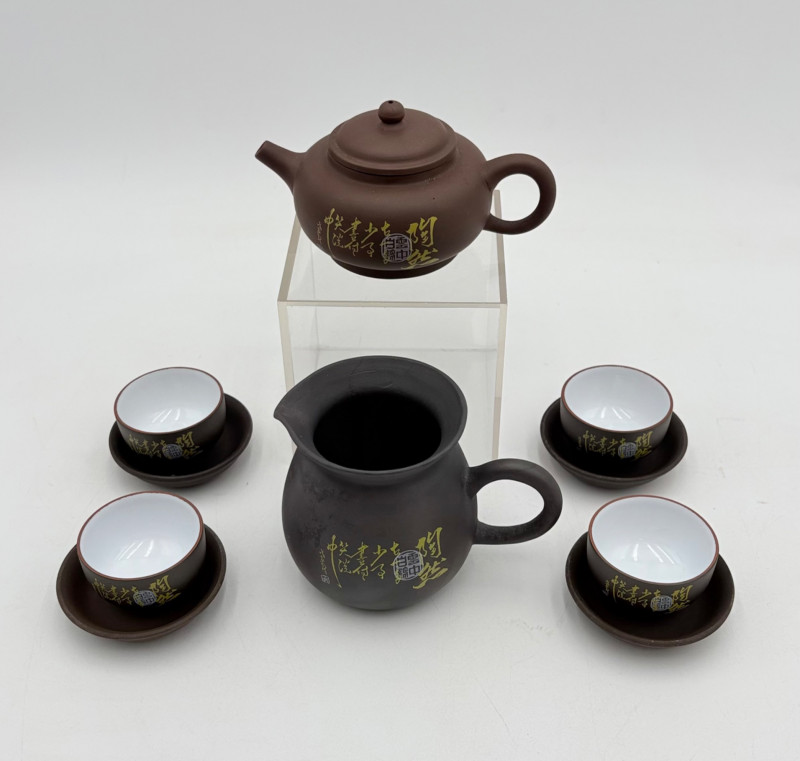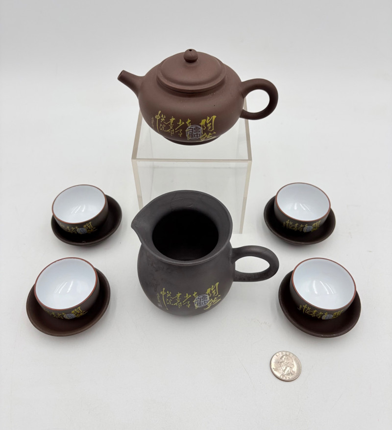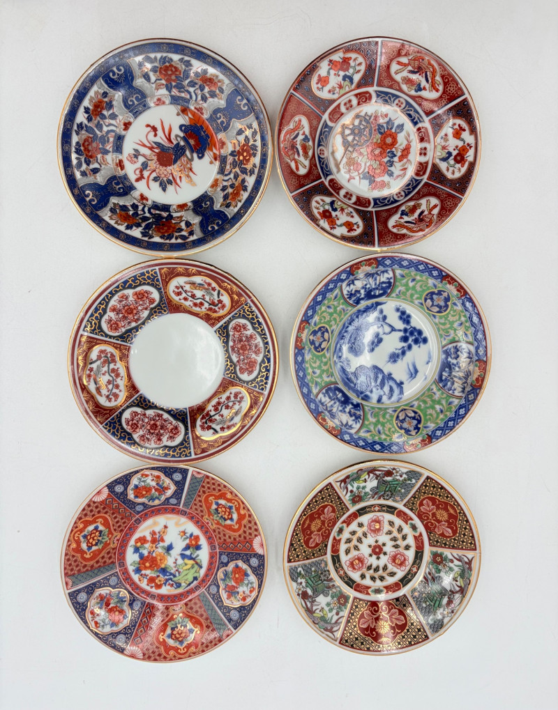 Cups for those who prefer smaller servings! Bisque brown teapot, creamer, and 4 cups/saucers. Cups are 1.25" H. 6 slightly larger cups & saucers in 6 distinct Imari-style patterns. Cups are 2.25" H. (perfect espresso size)