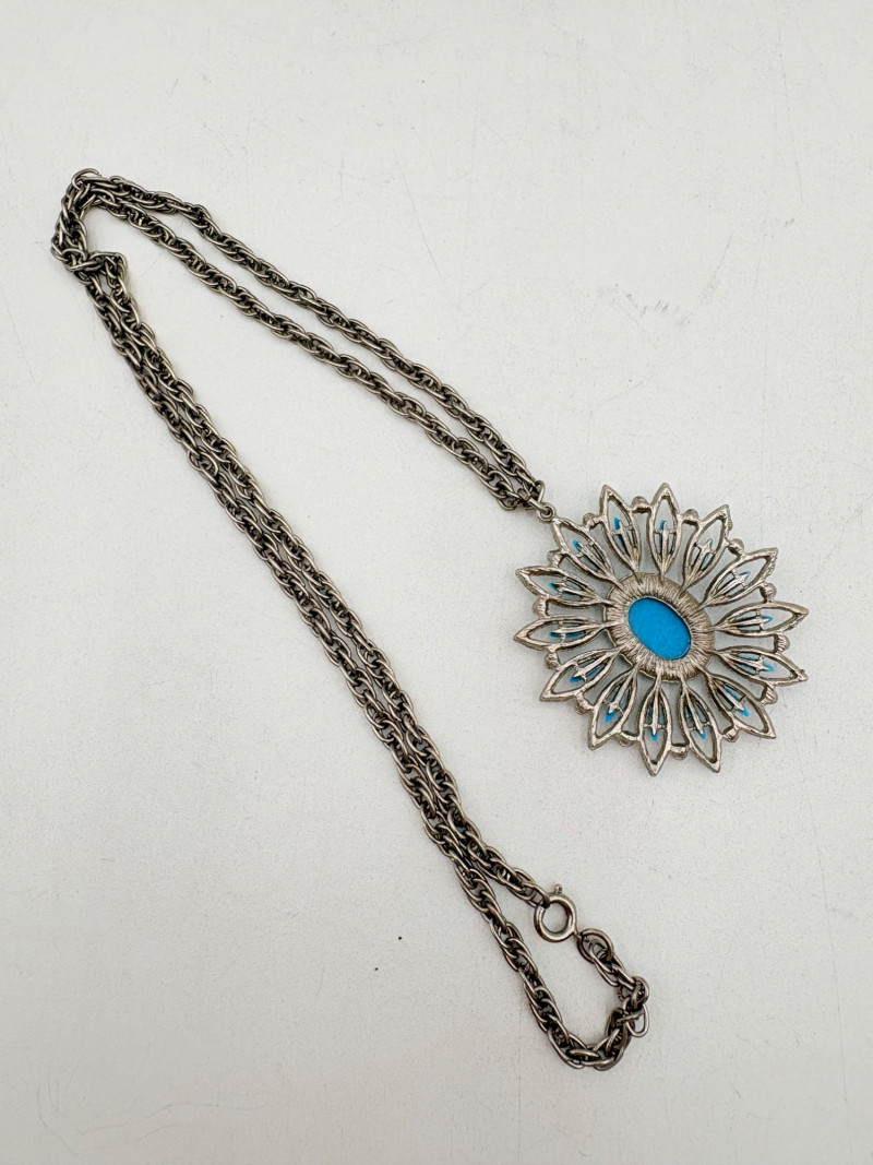 9 pendant necklaces of varying lengths, materials, and styles. Please see photos for details.