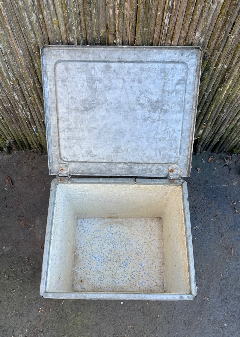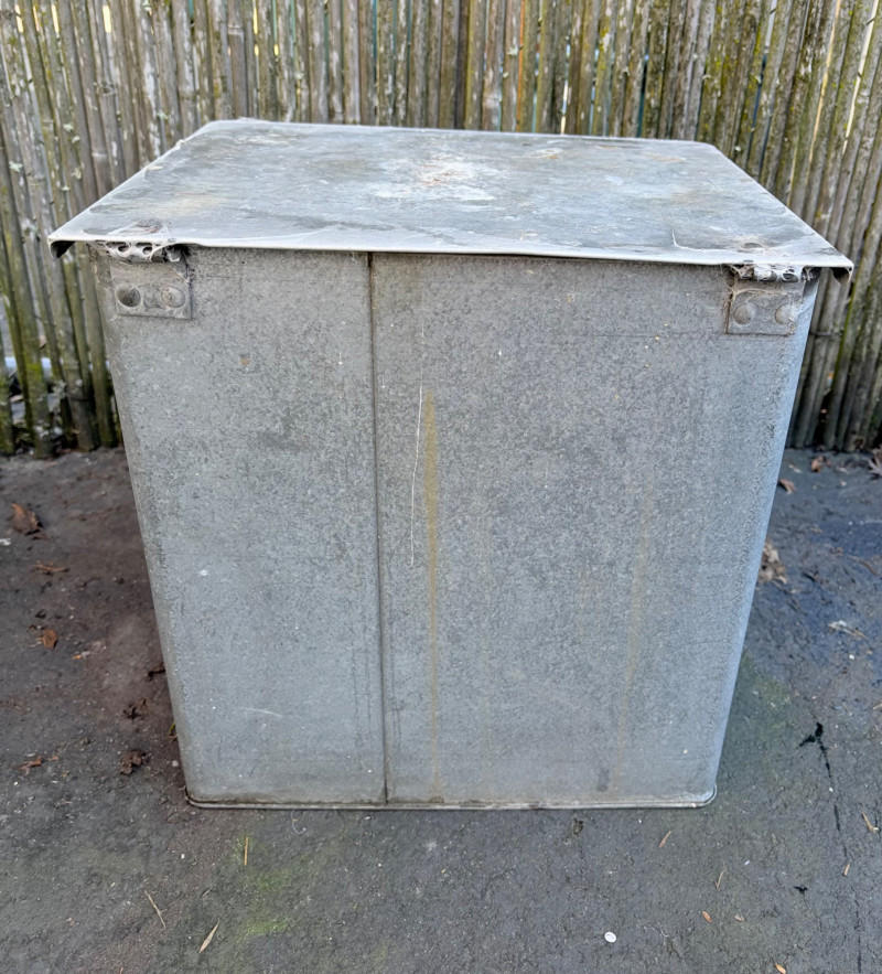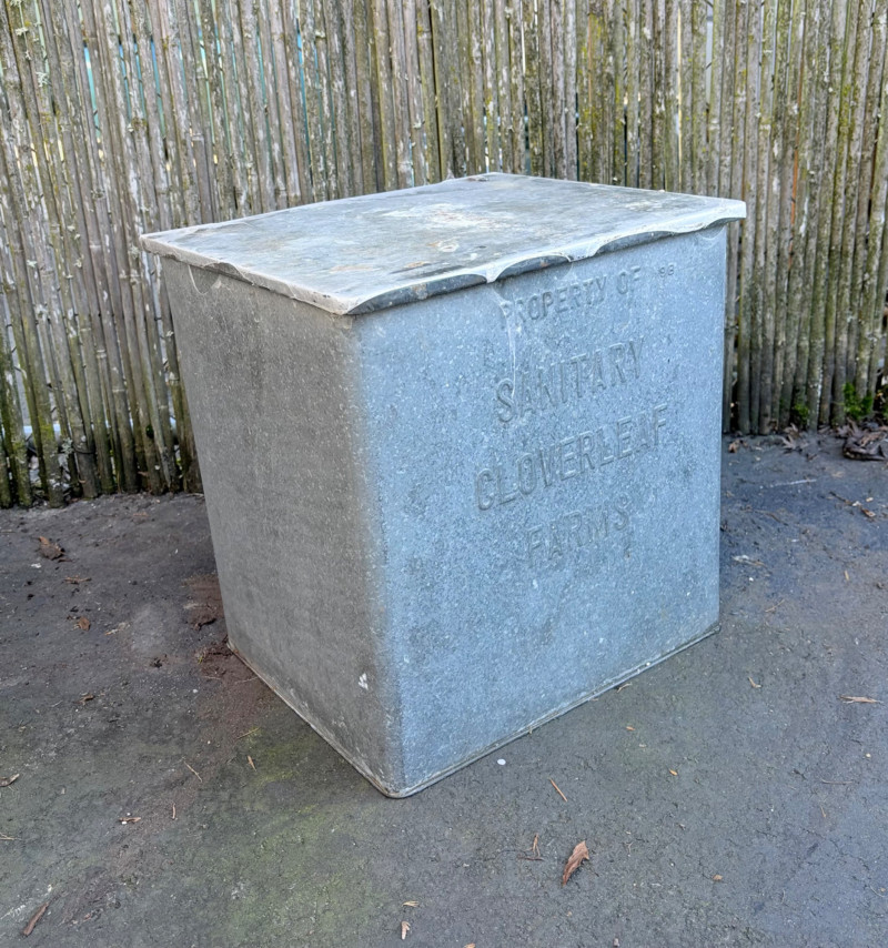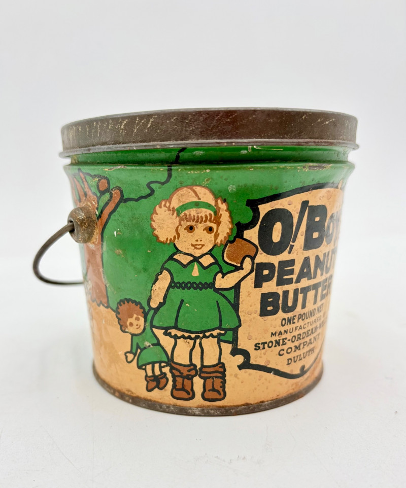 Pair of metal boxes for storage - one large & one small Antique insulated milk/dairy box for home deliveries. Galvanized metal and it appears to be well-sealed (we rinsed it out and the water didn't leak out). Embossed "Property of Sanitary Cloverleaf Farms". Measures 13.5" H x 13" W x 11" D. O! Boy Peanut Butter tin can with lid from the Stone-Odean-Wells Company of Duluth, MN. We believe it is from the 1930s. Measures 3.25" H x 3.75" W. 20s/30s O!boy Peanut Butter Pail - 2 Lb Tin Litho - Stone Ordean Wells Co. Duluth MN - Old Advertising - Etsy this one is for a 2lb. size; ours is for a 1lb. size which appears to be more rare