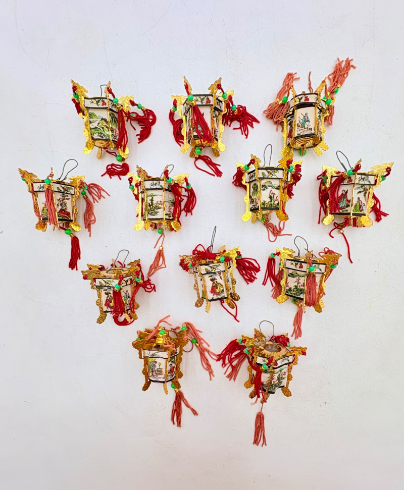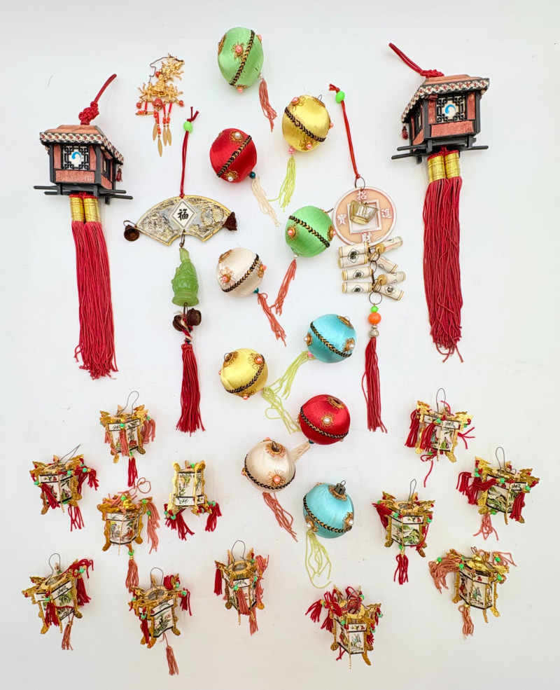 Large group of Asian ornaments with lots of lovely detail. What you see is what you get! Please note that these are definitely vintage and have been used - they show some age but still overall look great - please see photos.