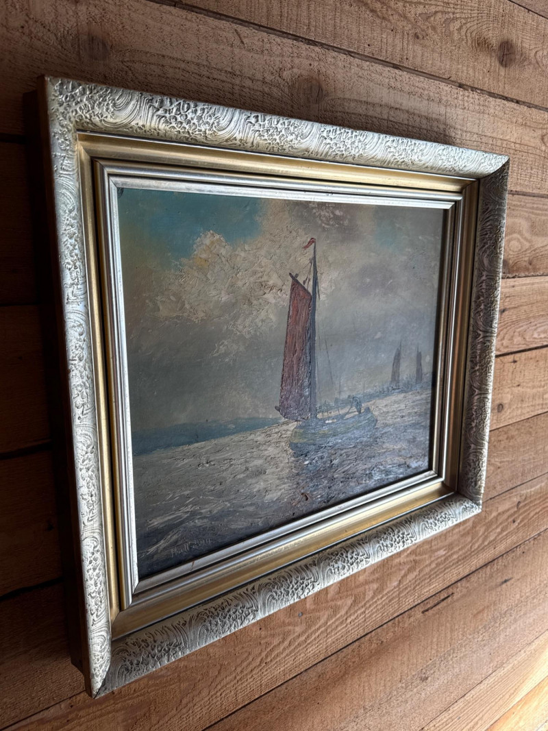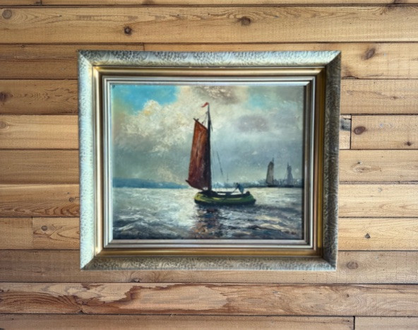 Antique Dutch Seascape Oil Painting Gilt Wood Frame *signed