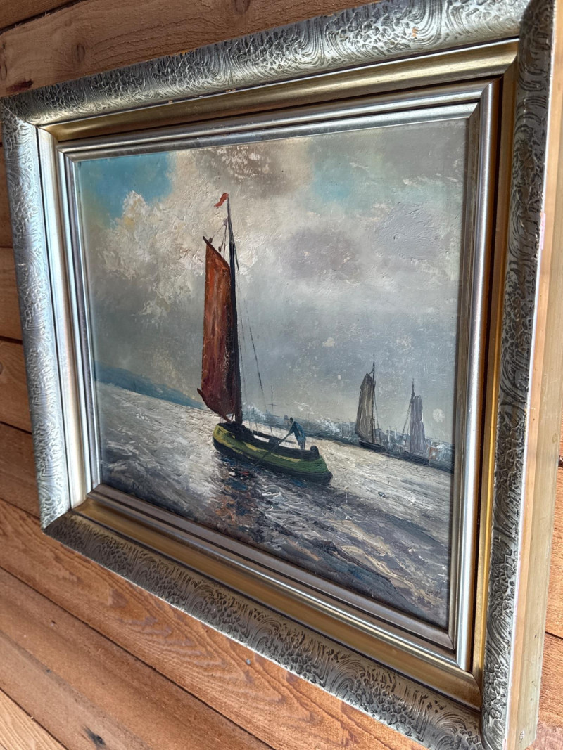 Lot # 1 - Antique Dutch Seascape Oil Painting Gilt Wood Frame *signed