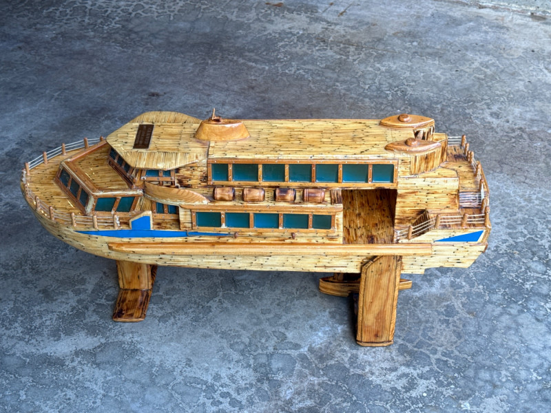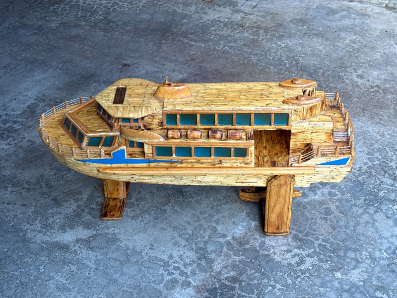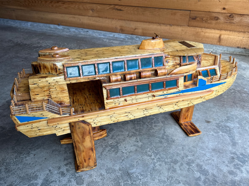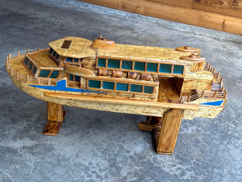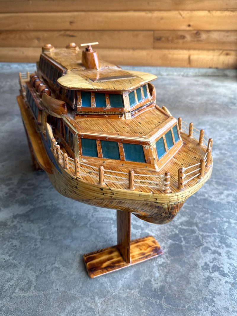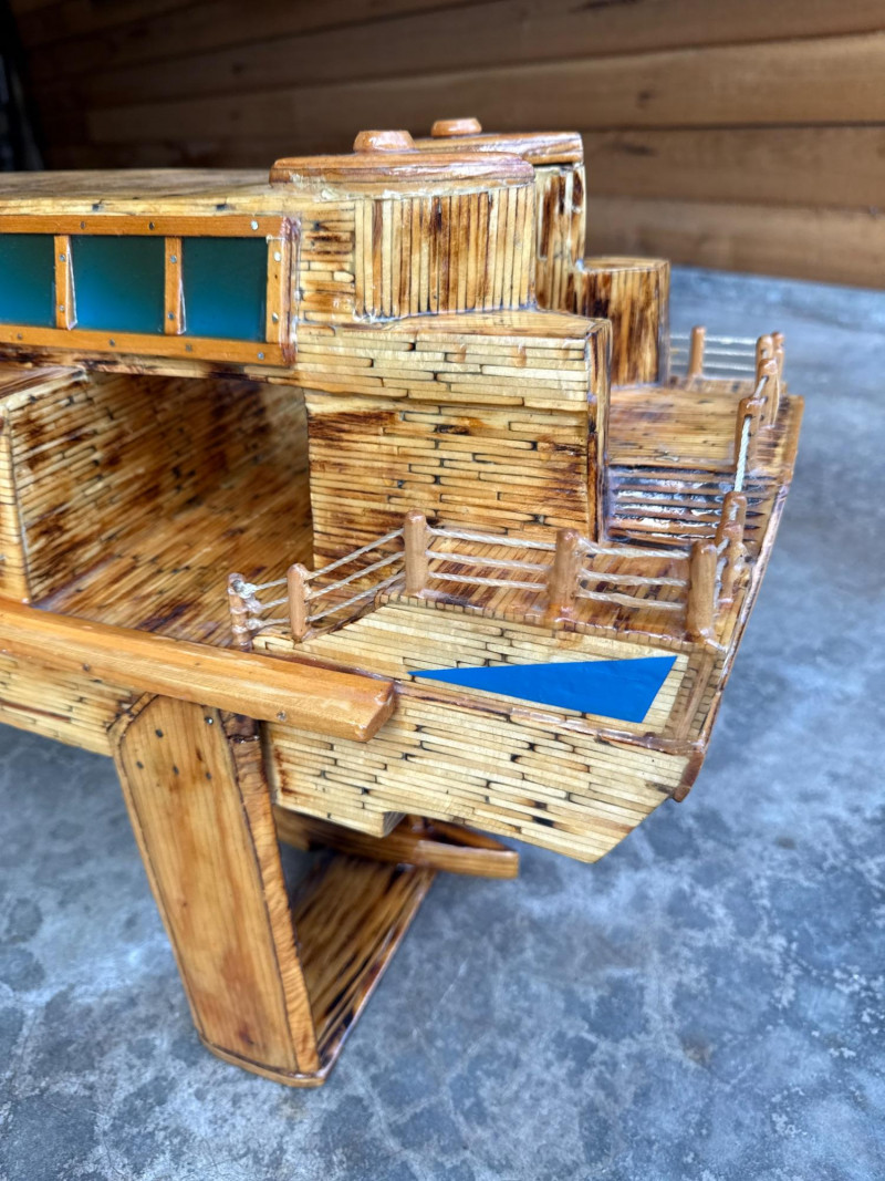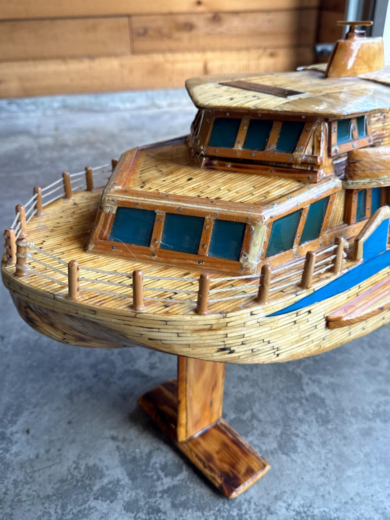 Lot # 9 - Large Folk Art Matchstick Ship Model by C.E. Mowder - 32" Long