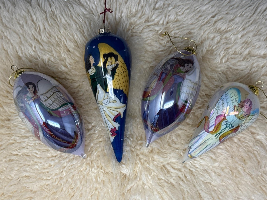 Lot # 46 - Lot of 4 Li Bien Hand-Painted Glass Ornaments - Angels & Holiday Theme