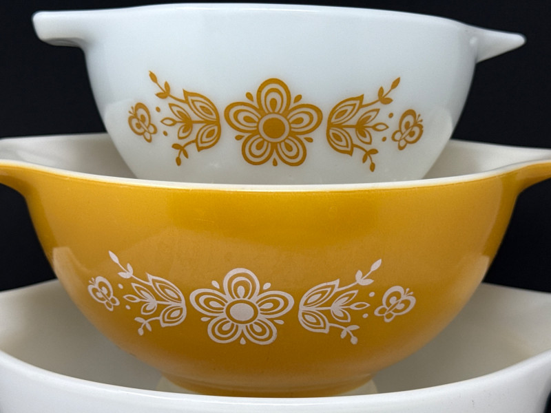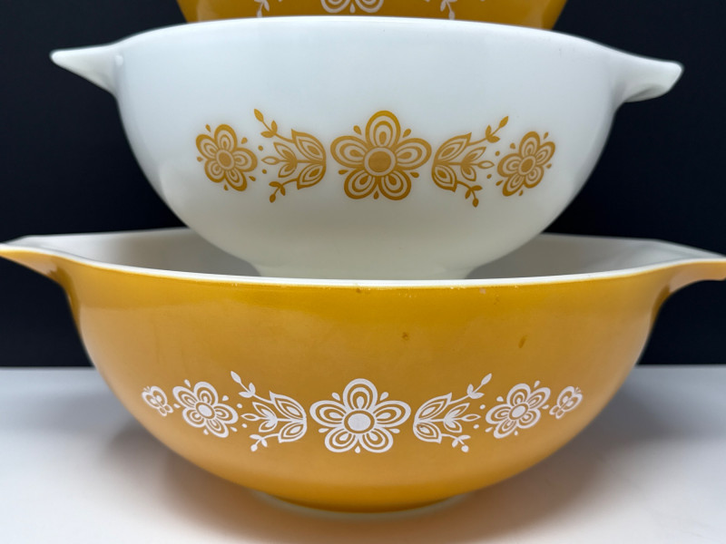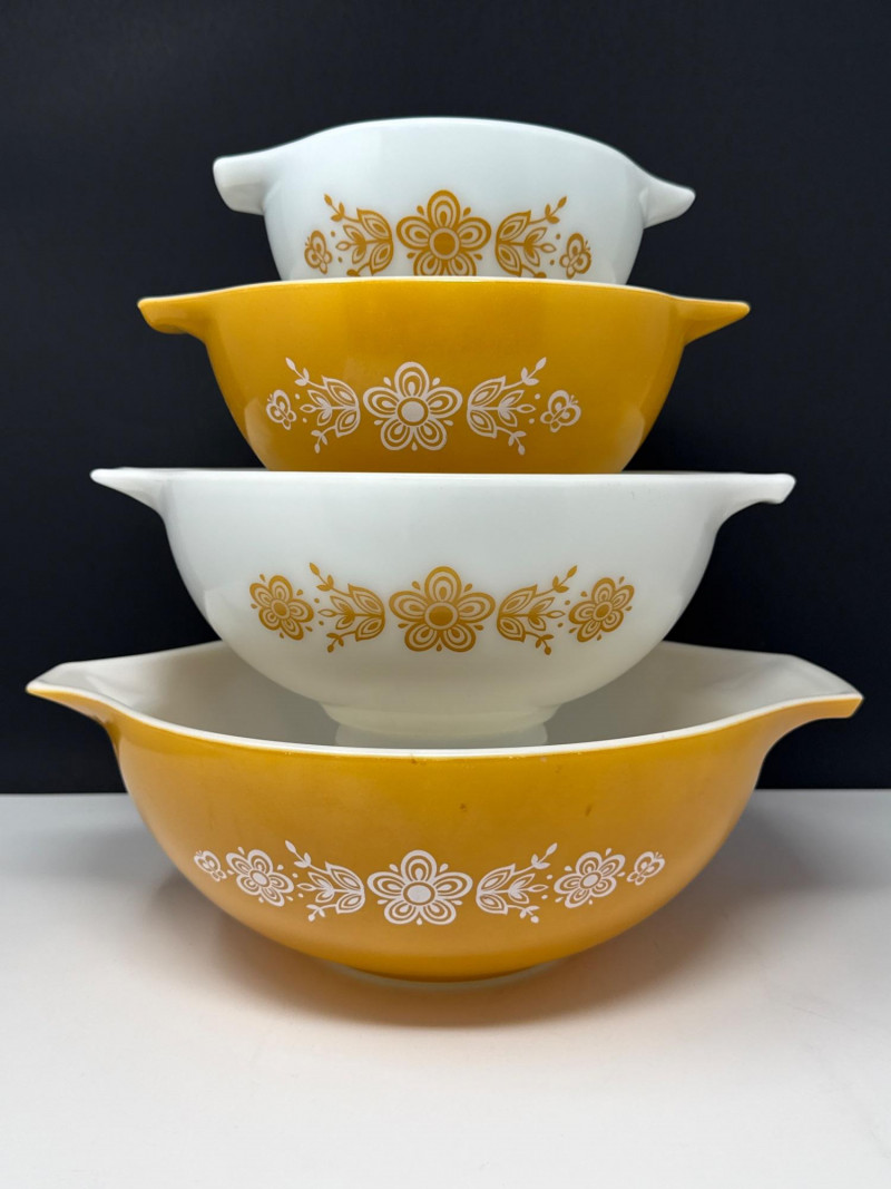 Lot # 21 - Vintage Pyrex "Butterfly Gold" 4-Piece Cinderella Bowl Set #441-444