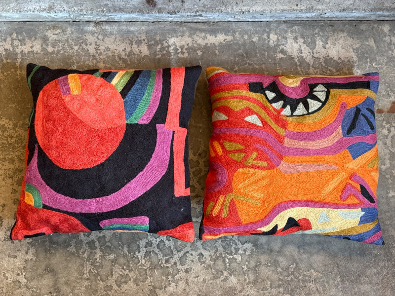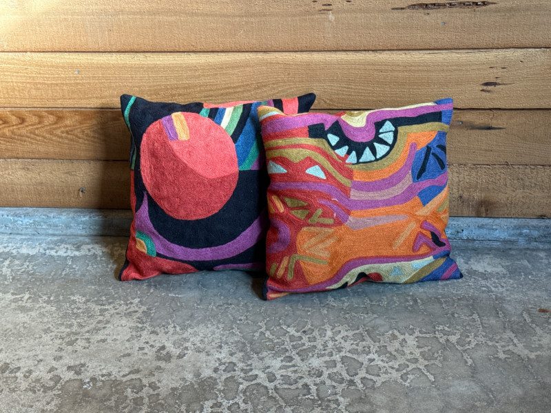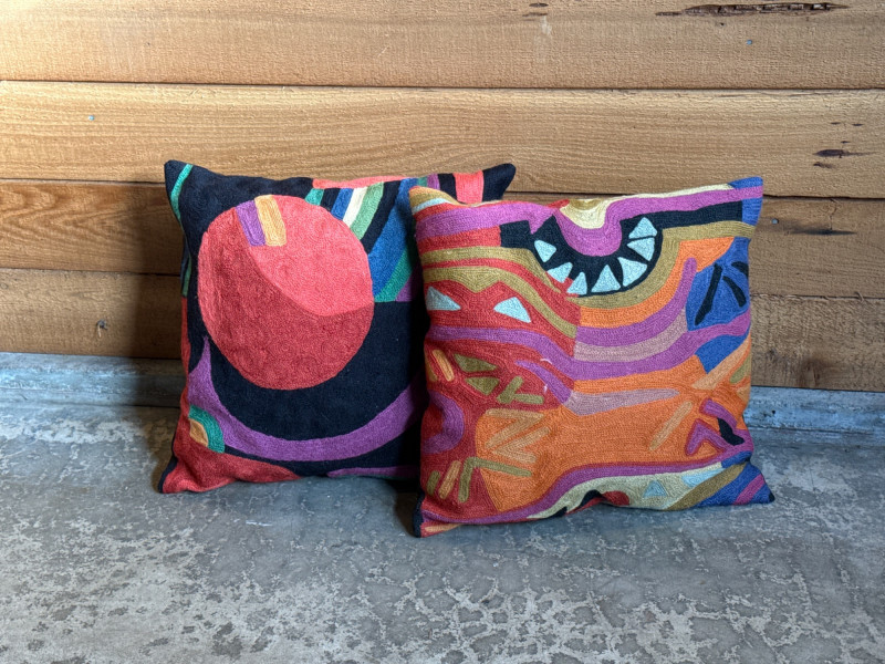 Lot # 22 - Kashmir Hand-Embroidered 18" Wool/Cotton Throw Pillows - Pair