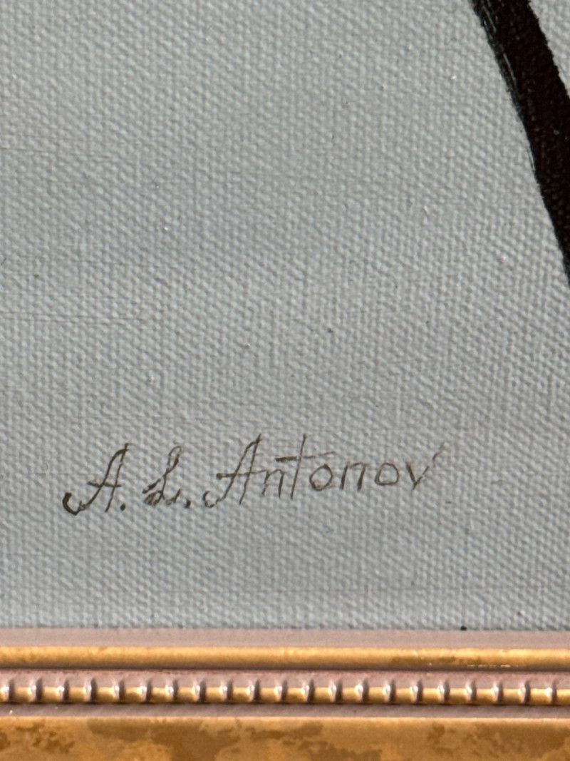 Lot # 29 - A. L. Antonov Signed Painting - Pink Rose on Pedestal