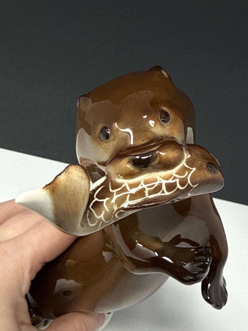 Lot # 31 - Vintage Lomonosov USSR Porcelain Figurine - Otter with Fish
