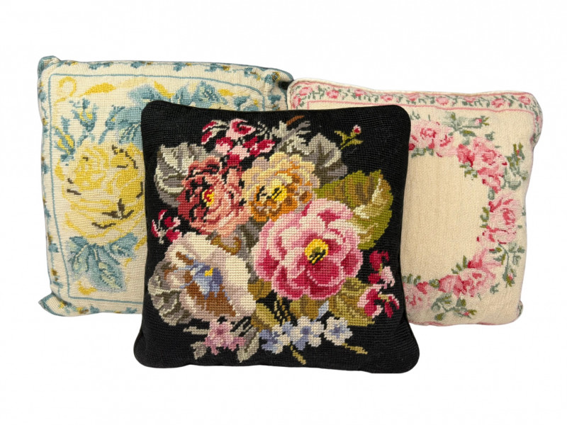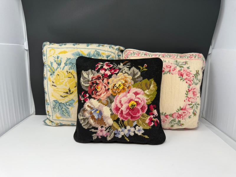 Lot # 57 - Vintage Floral Needlepoint Pillows- Set 3