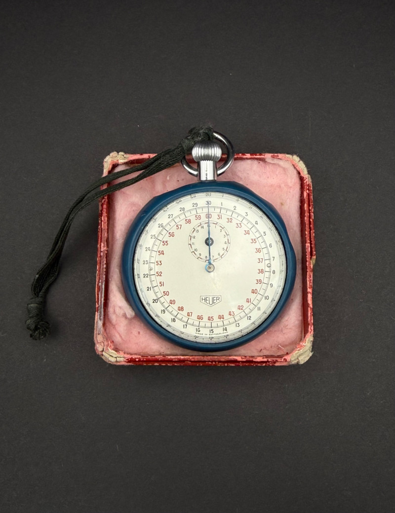 Vintage Heuer Trackmaster Stopwatch Has blue rubber case. Untested