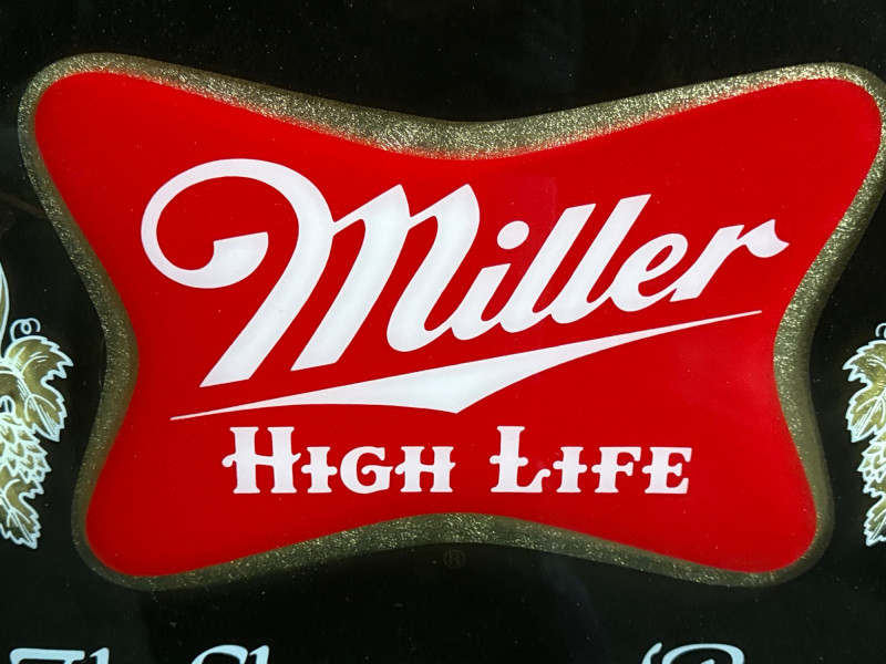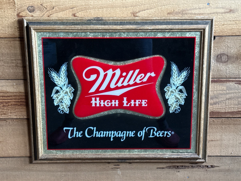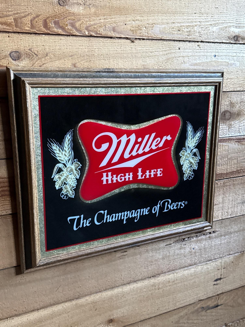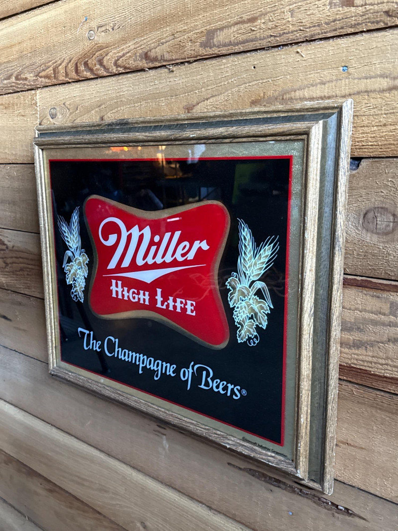 This lot features a classic vintage Miller High Life beer mirror, a staple of retro bar decor and