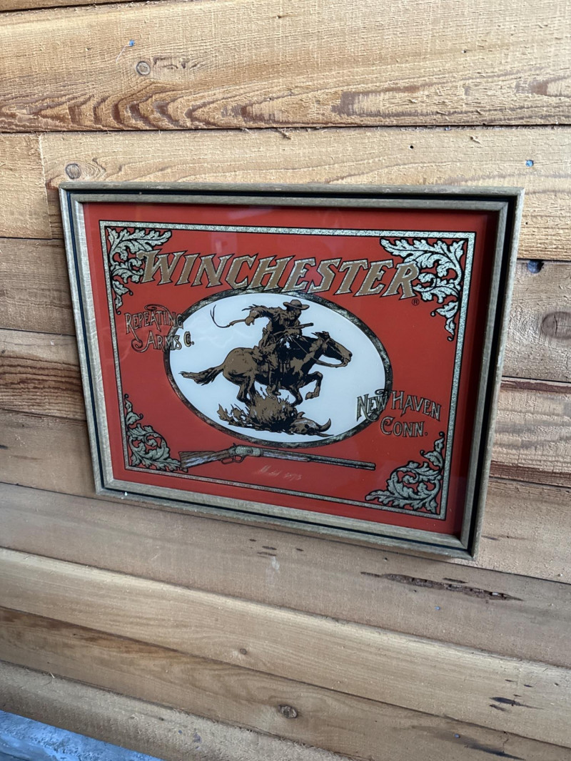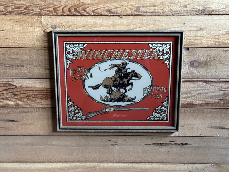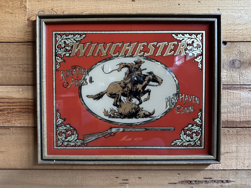 Lot # 66 - Vintage Winchester Advertising Glass Sign in Wood Frame