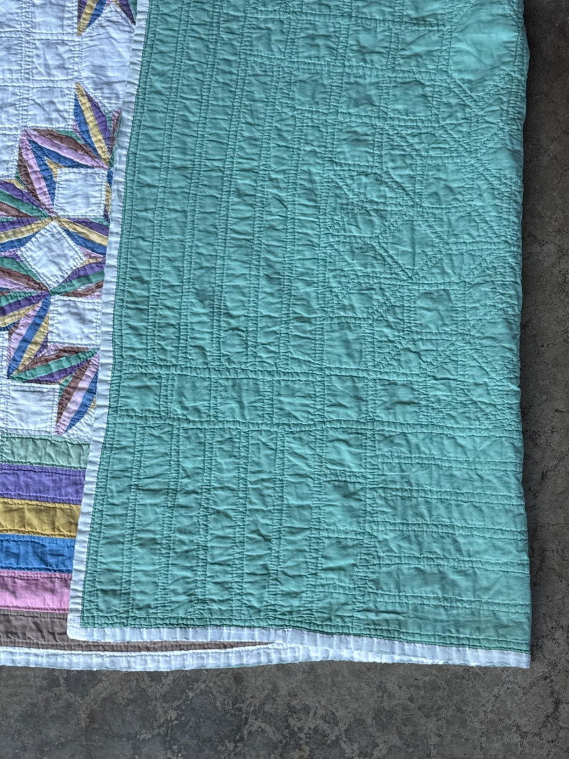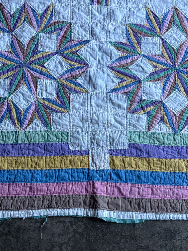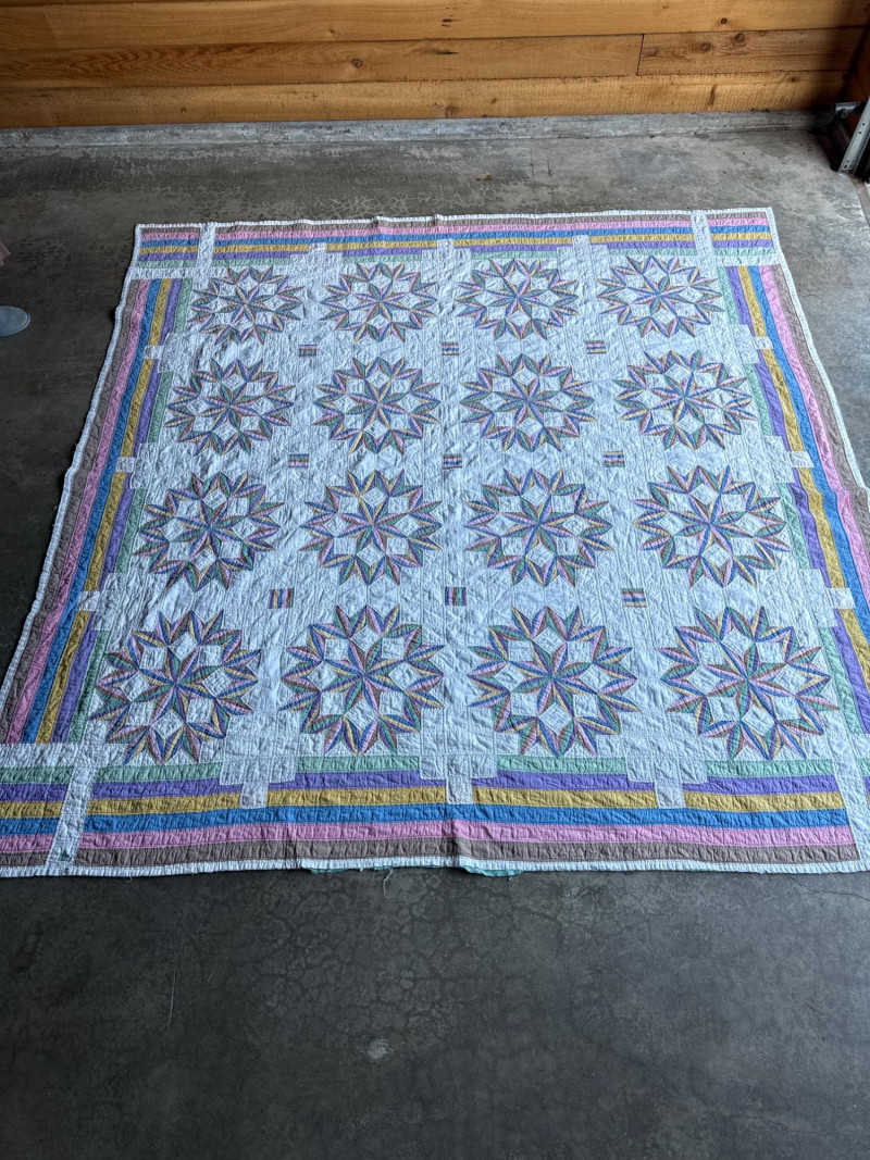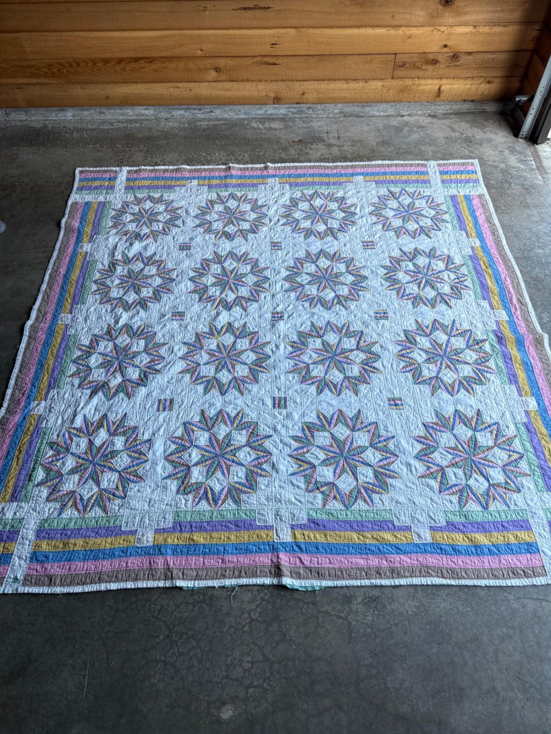 Vintage Star Patterned Quilt 86" x 90" Soft, pre-loved condition. Please note photos for more details on condition.