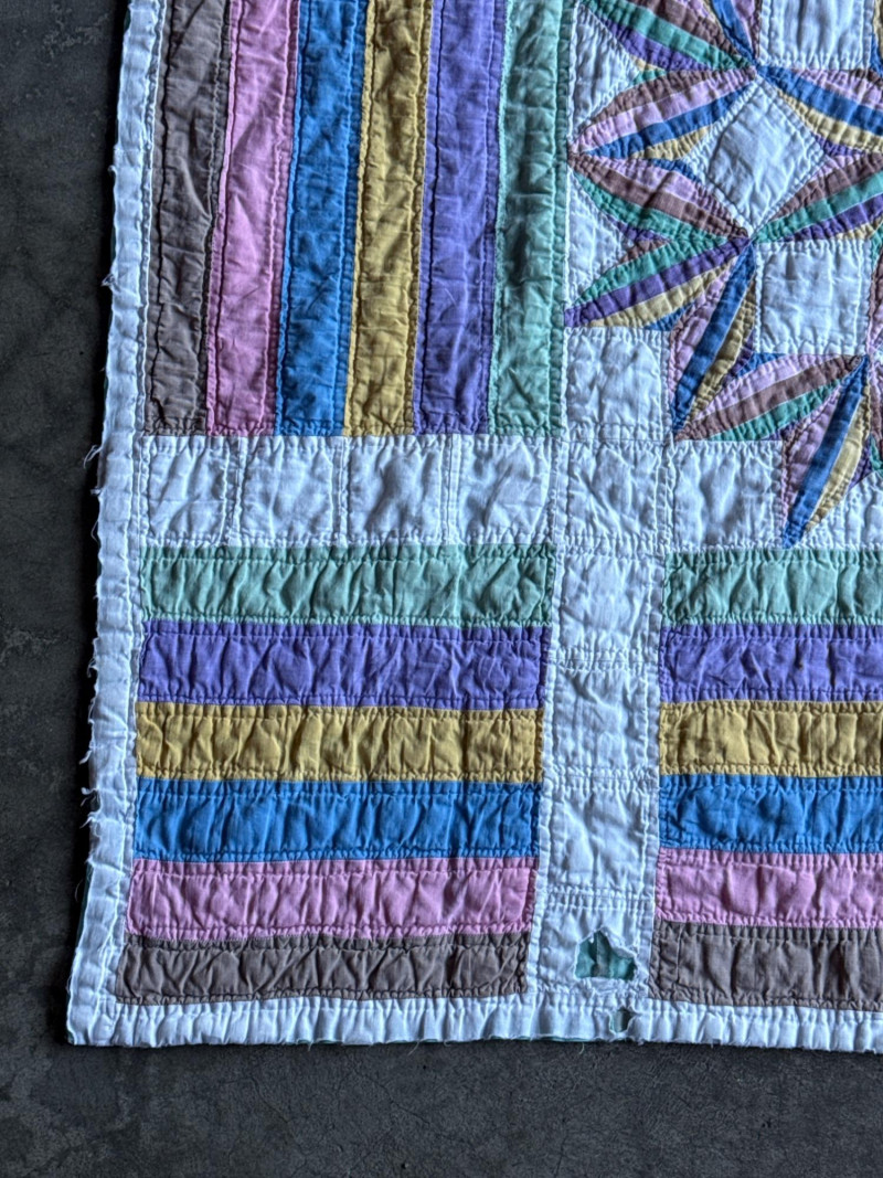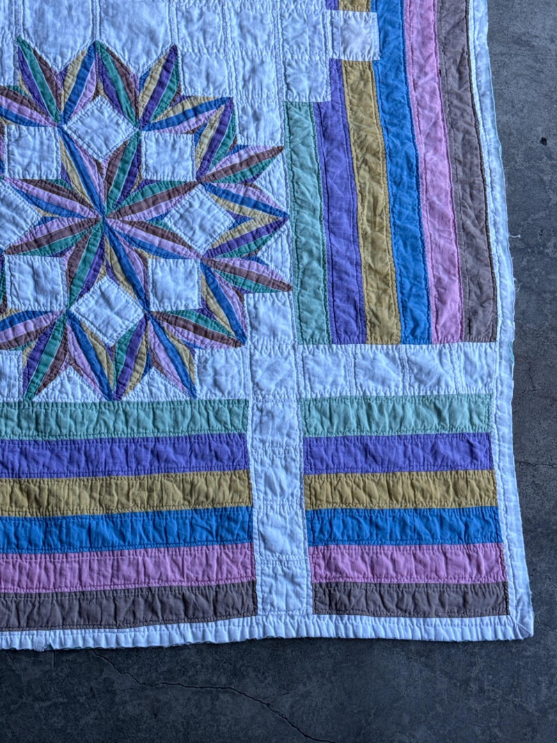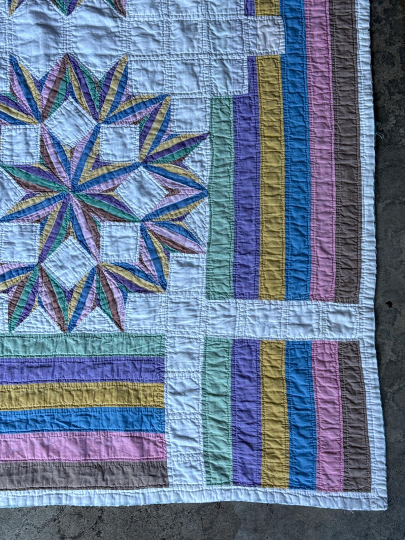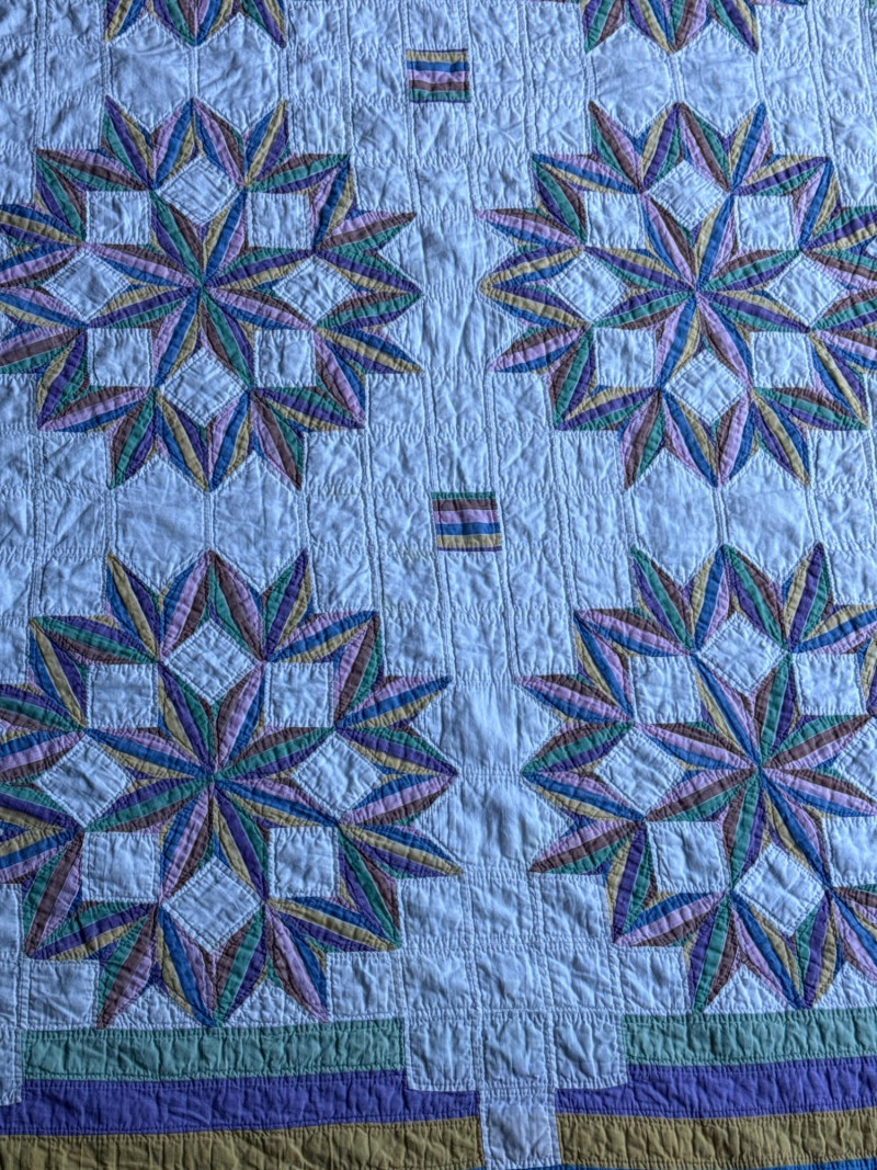 Vintage Star Patterned Quilt 86" x 90" Soft, pre-loved condition. Please note photos for more details on condition.