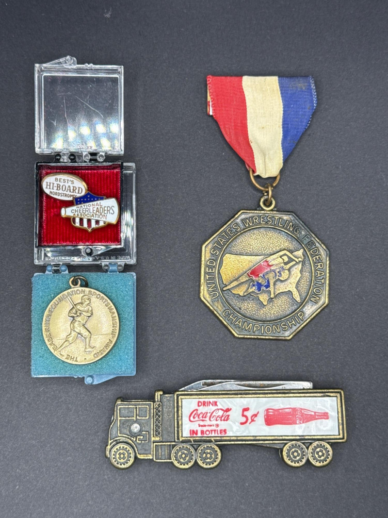 Commemorative Pins, Babe Ruth Medal & Coca Cola Pocket Knife