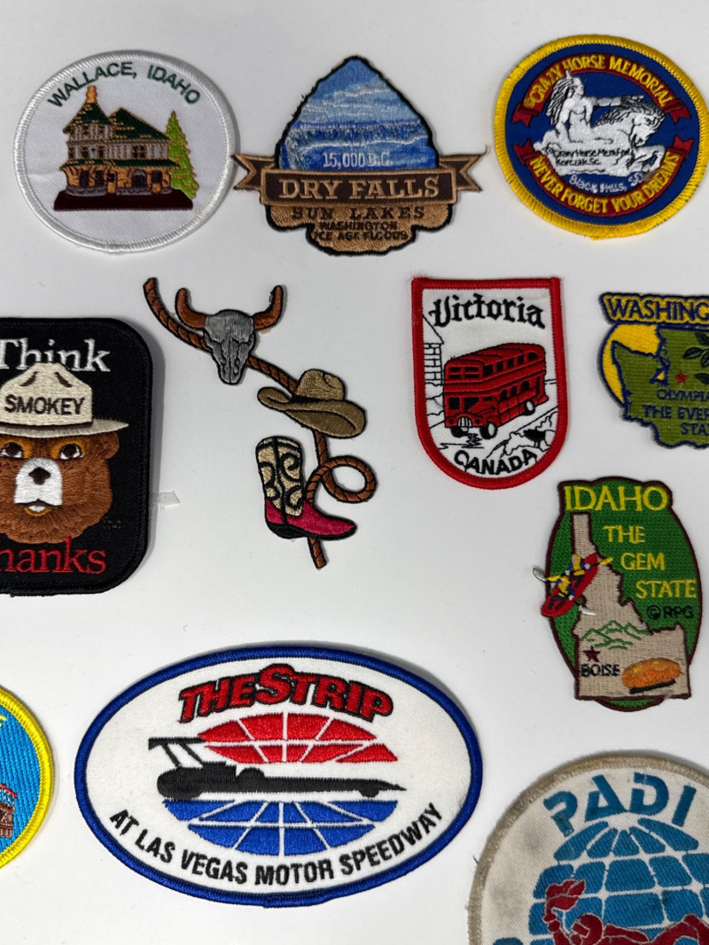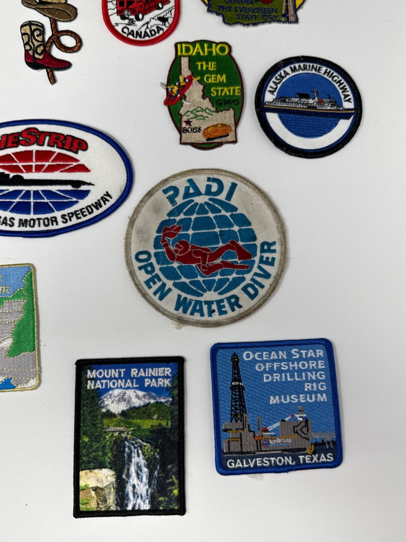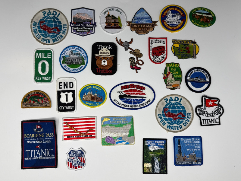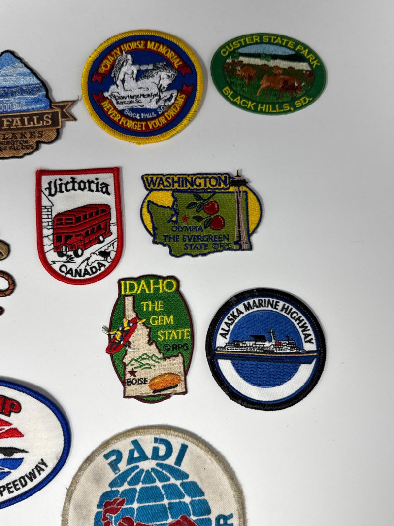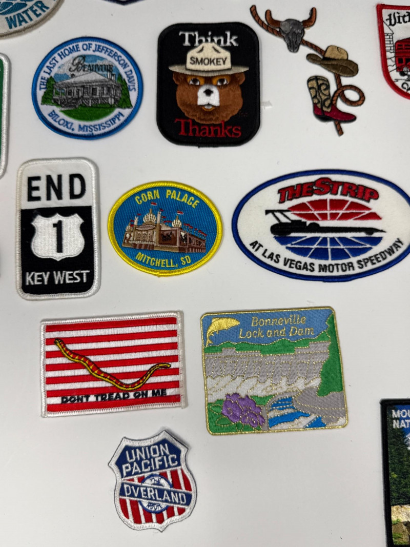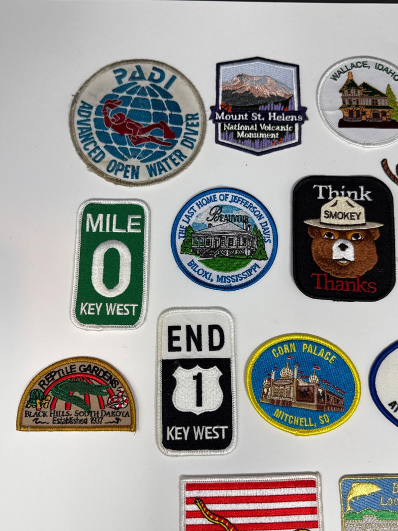 This lot features a diverse and vibrant collection of souvenir and commemorative patches, perfect for travelers, collectors, or DIY enthusiasts looking to personalize gear. The set includes a wide variety of embroidered designs celebrating various destinations, activities, and historical events.