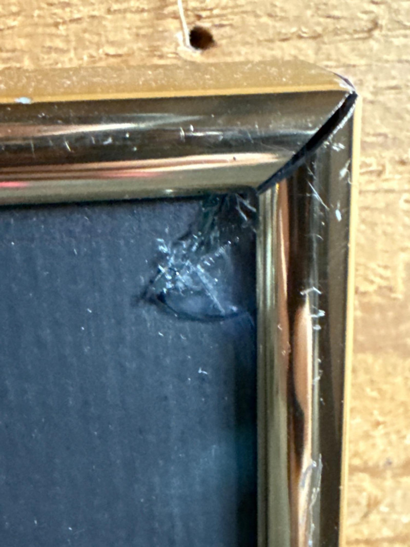 Please note, as shown in last photo, glass is broken in the corner of one piece.