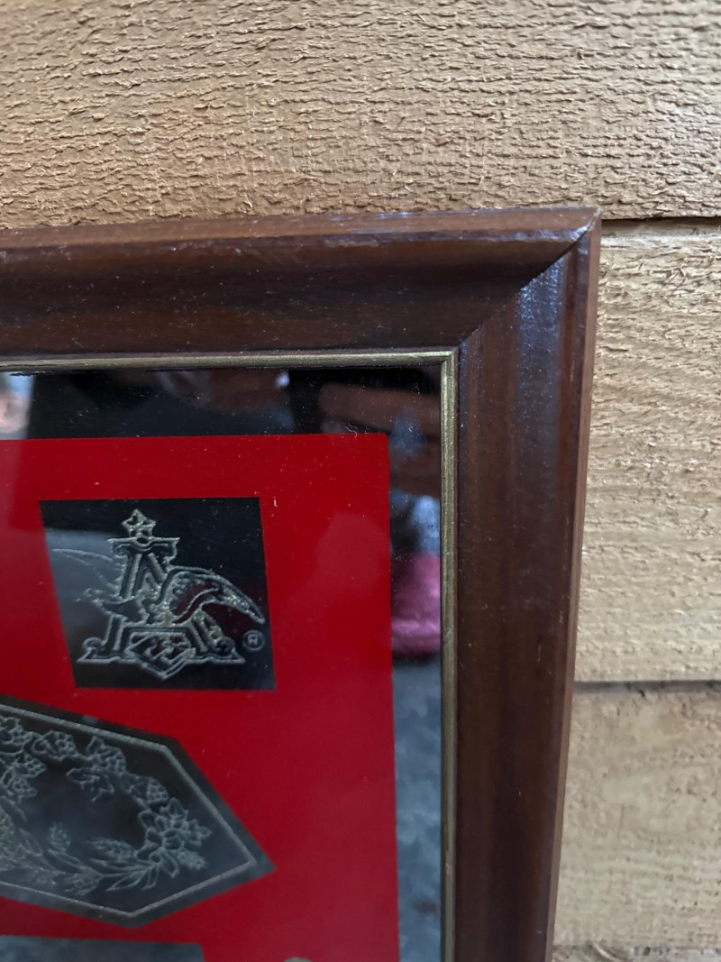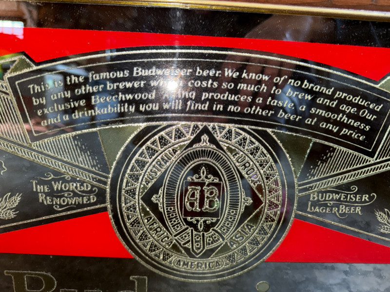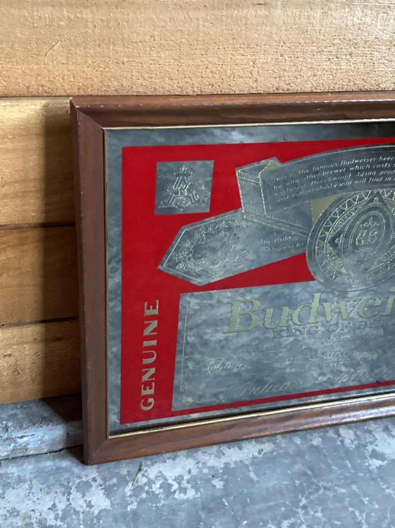 Lot # 105 - Retro Budweiser King of Beers Advertising Mirror in Wood Frame