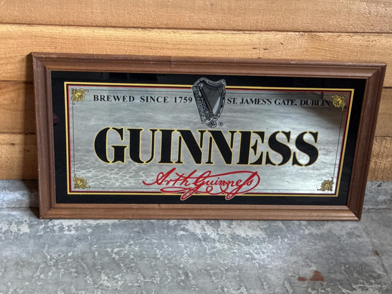 Lot # 107 - Vintage Guinness Bar Mirror - 31" x 16" Traditional Pub Decor