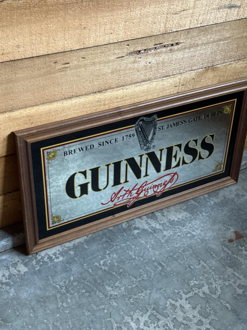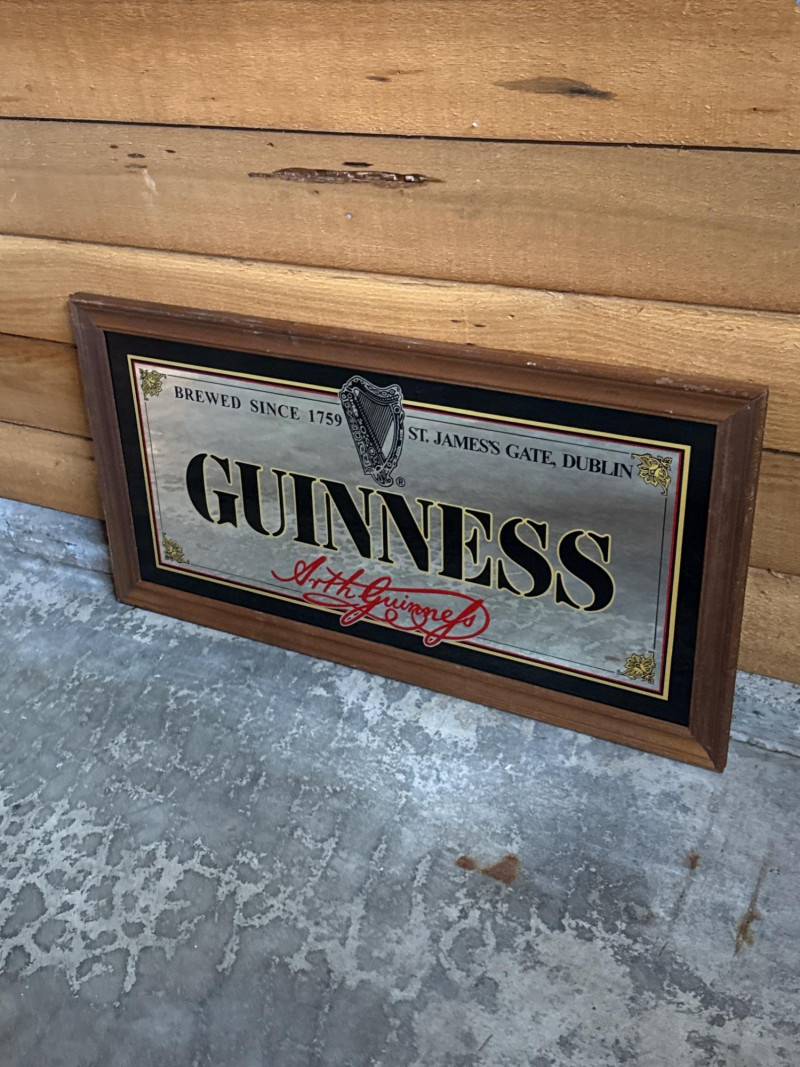 This lot features a classic Guinness Bar Mirror, an essential piece of breweriana for any home bar, pub-themed room, or vintage advertising collection. The mirror combines functional utility with the iconic branding of Ireland’s most famous stout. In good vintage condition.
