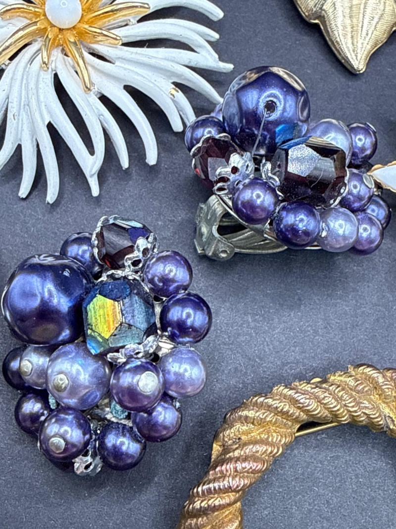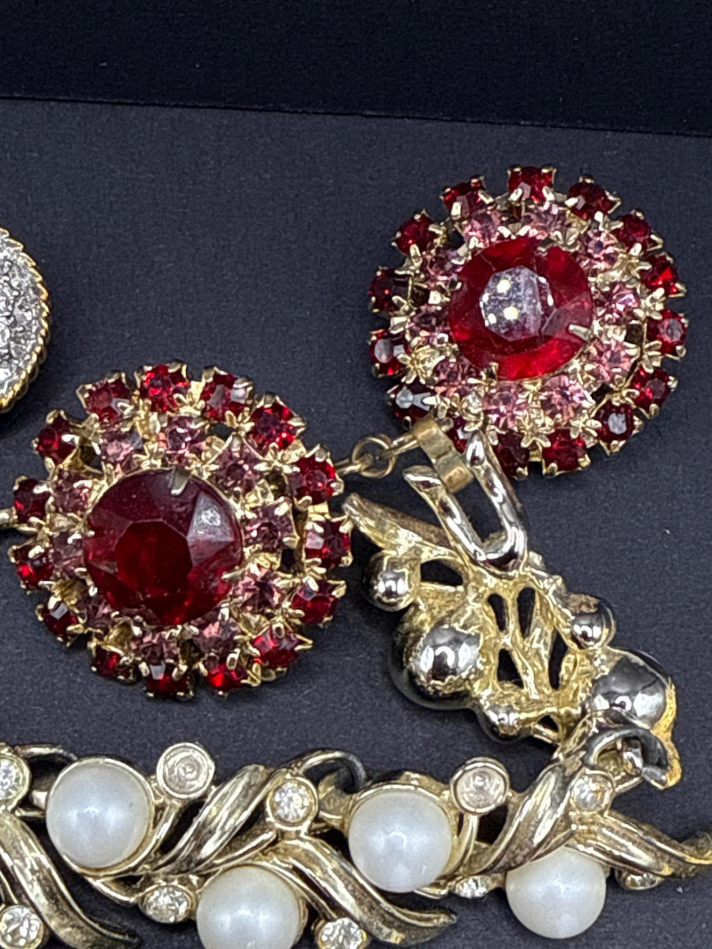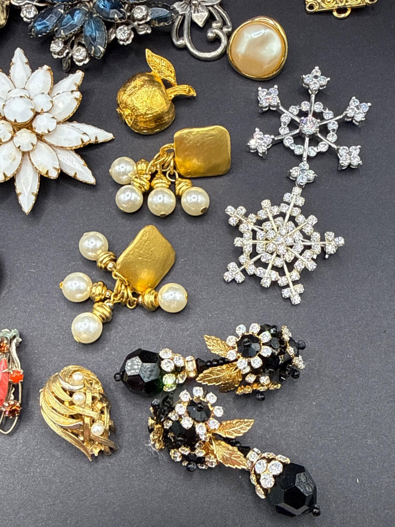 Lot # 117 - Vintage "Bling" Costume Earrings & Brooches