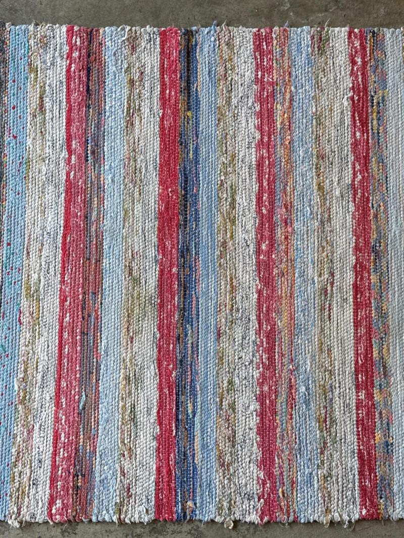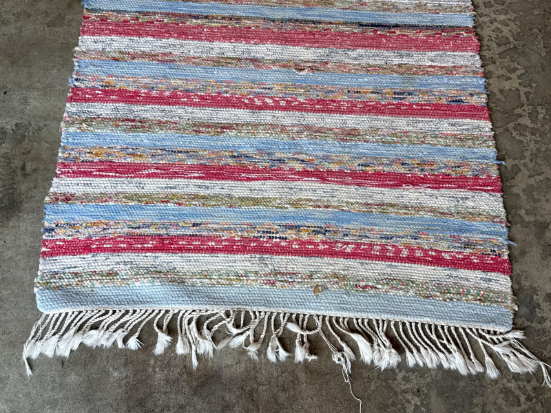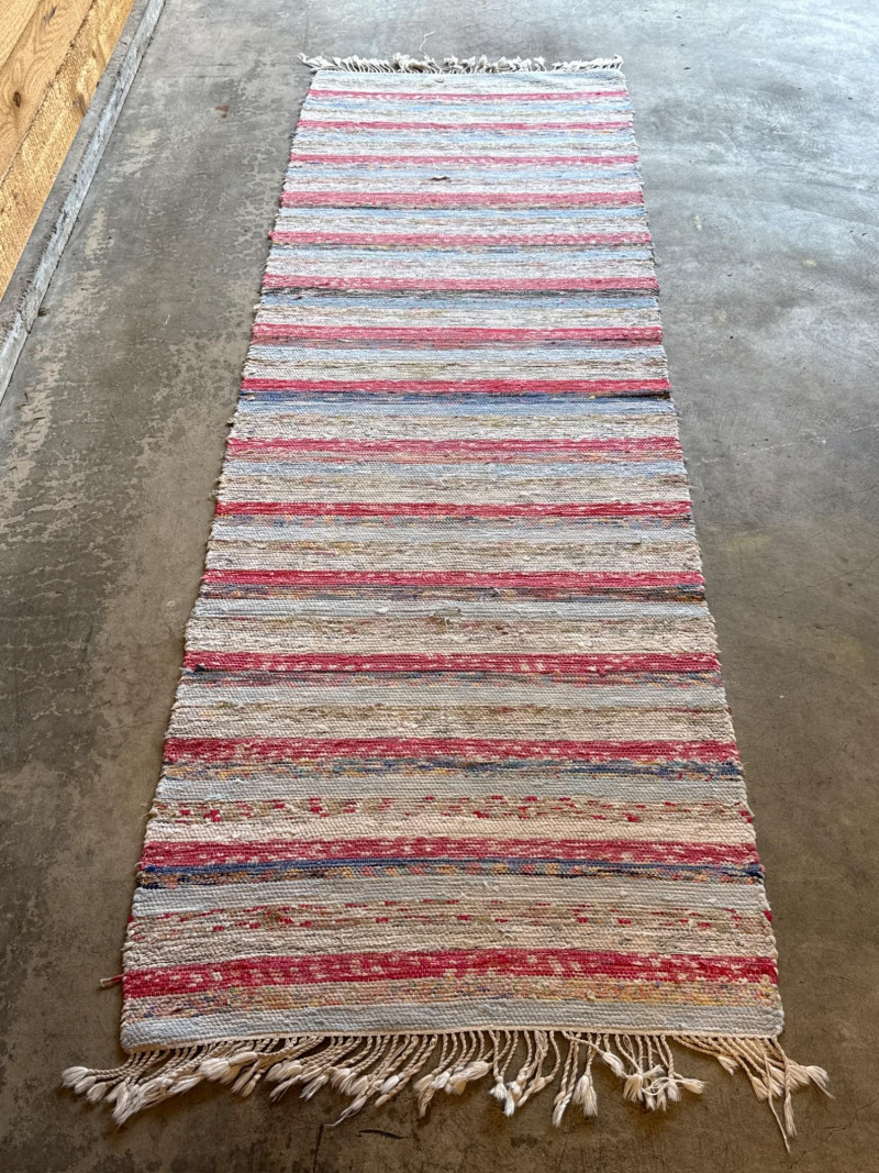 Lot # 119 - Vintage Handwoven Swedish Cotton Rag Runner- Pinks & Blues 88” x 30”