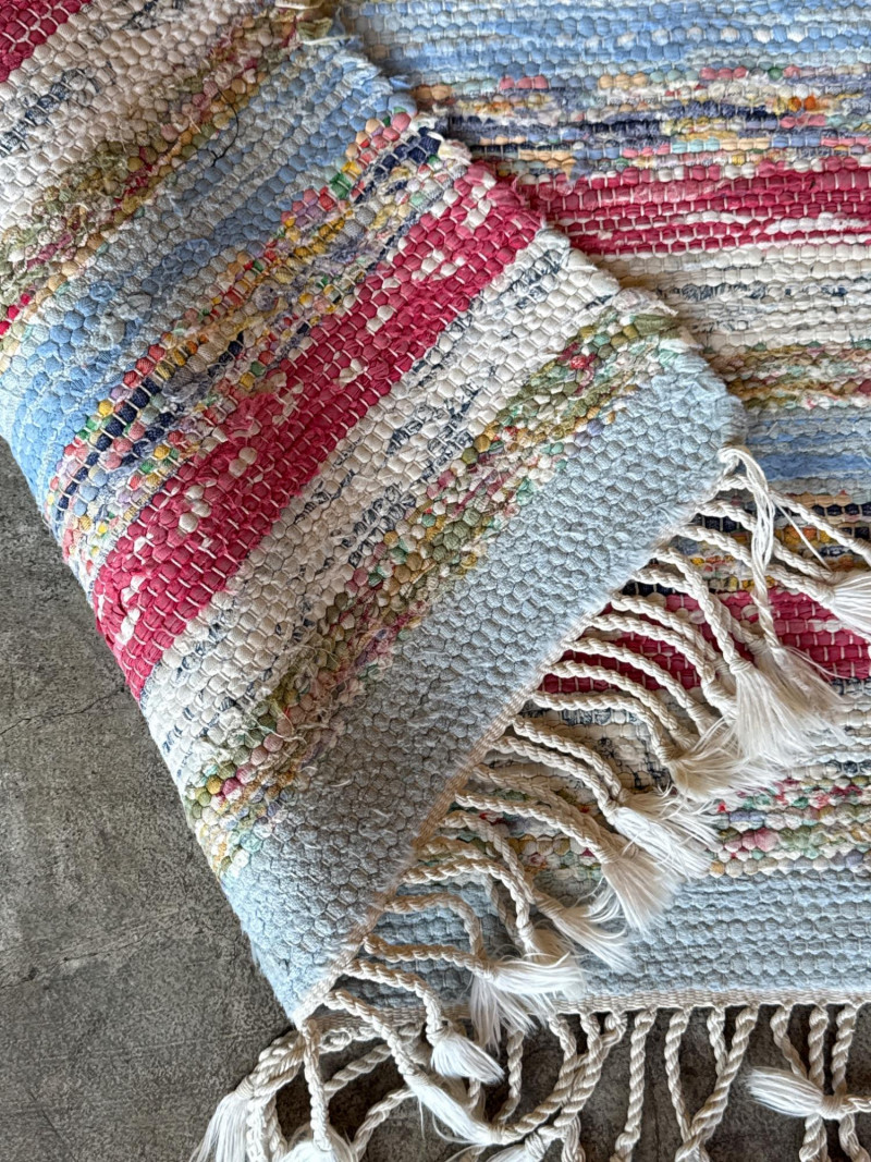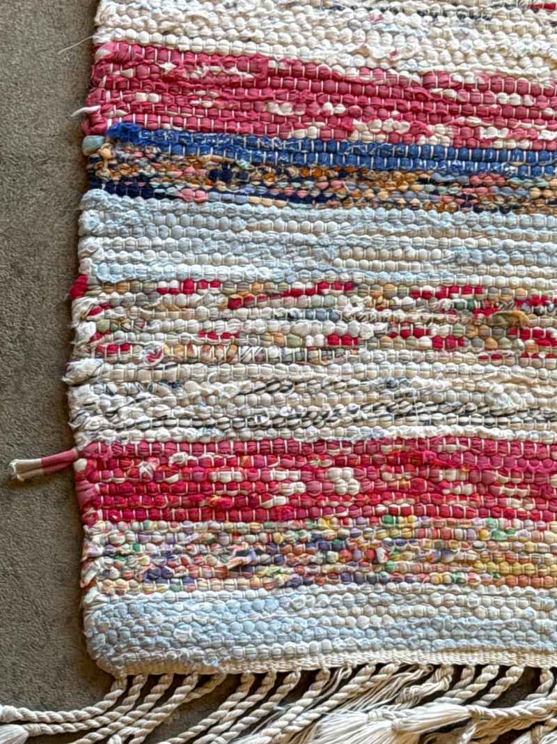 Vintage Handwoven Swedish Cotton Rag Runner- Pinks & Blues 88” x 30” Soft! Loads of life left.